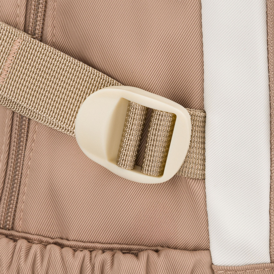 Z boku plecaka umieszczono regulowane pasy kompresyjne, które pozwalają dopasować jego kształt i objętość do zawartości. Dzięki nim plecak lepiej przylega do pleców i wygląda schludnie – nawet jeśli nie jest w pełni załadowany.