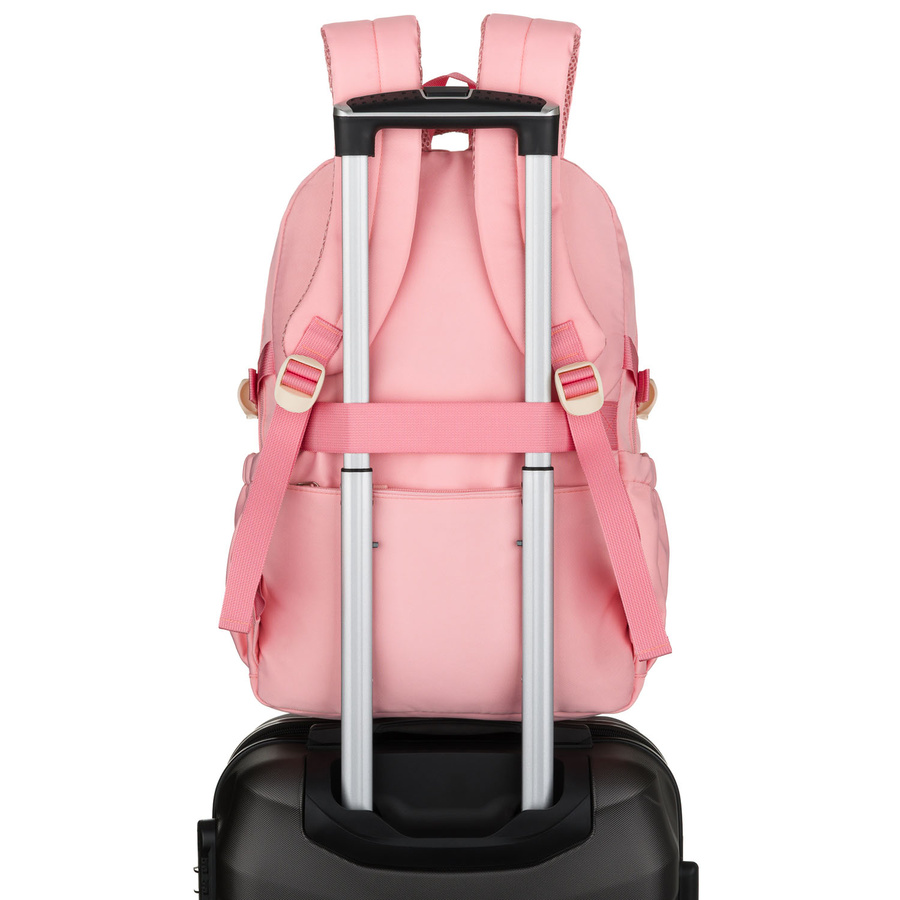 Modny plecak szkolny z poliestru w różowym kolorze, zawieszony na regulowanych szelkach – Peterson