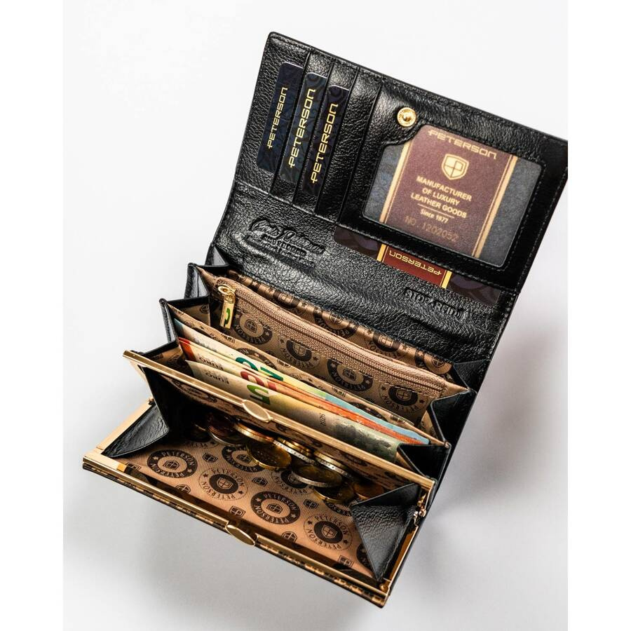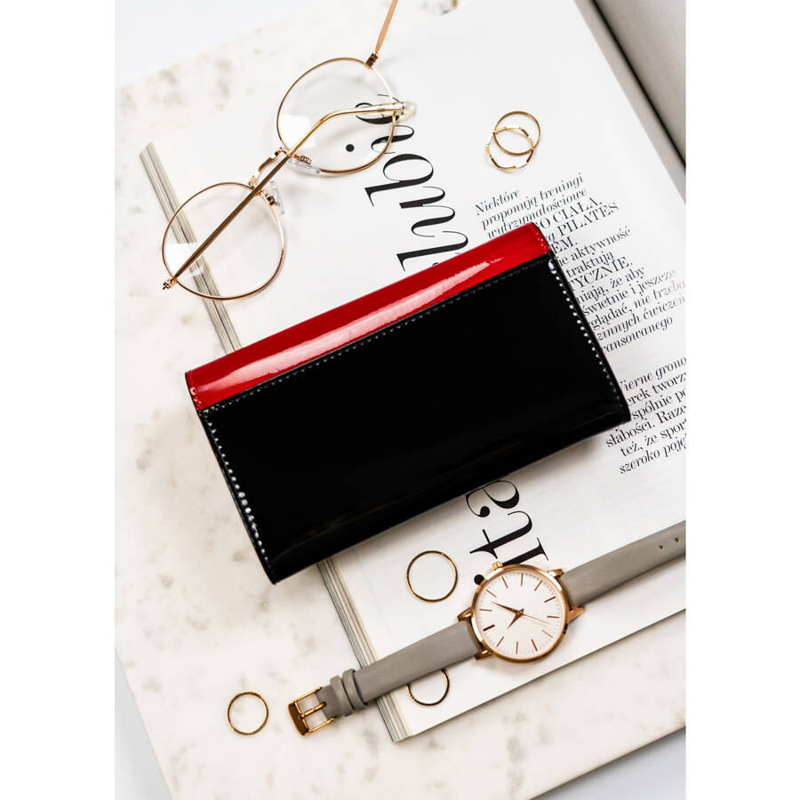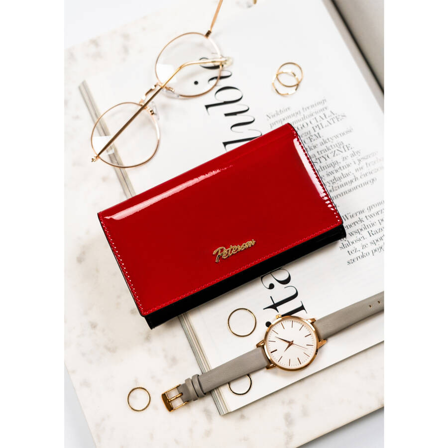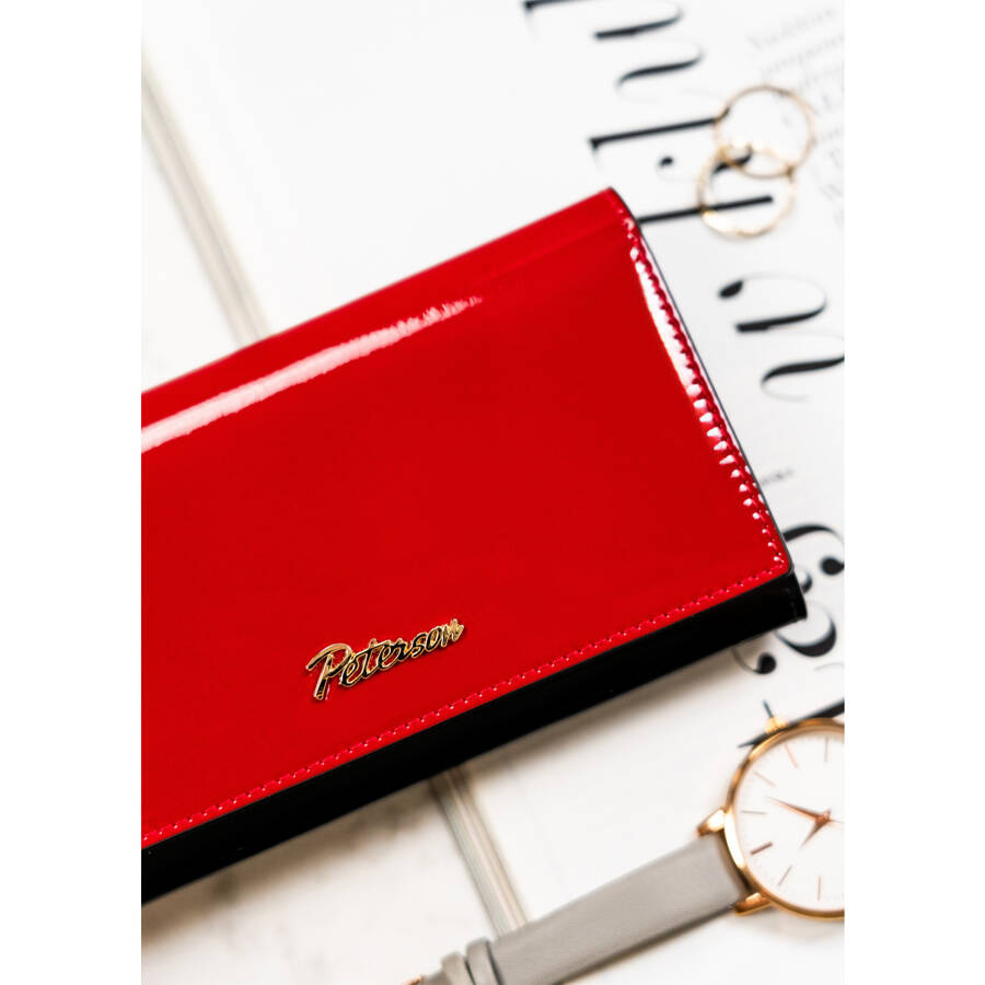 Modny portfel damski ze skóry naturalnej w czerwono-czarnym kolorze zamykany na zatrzask i bigiel – Peterson