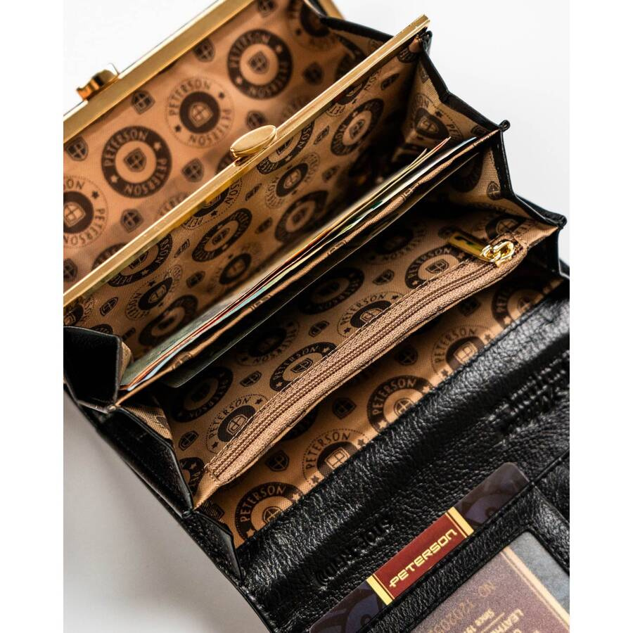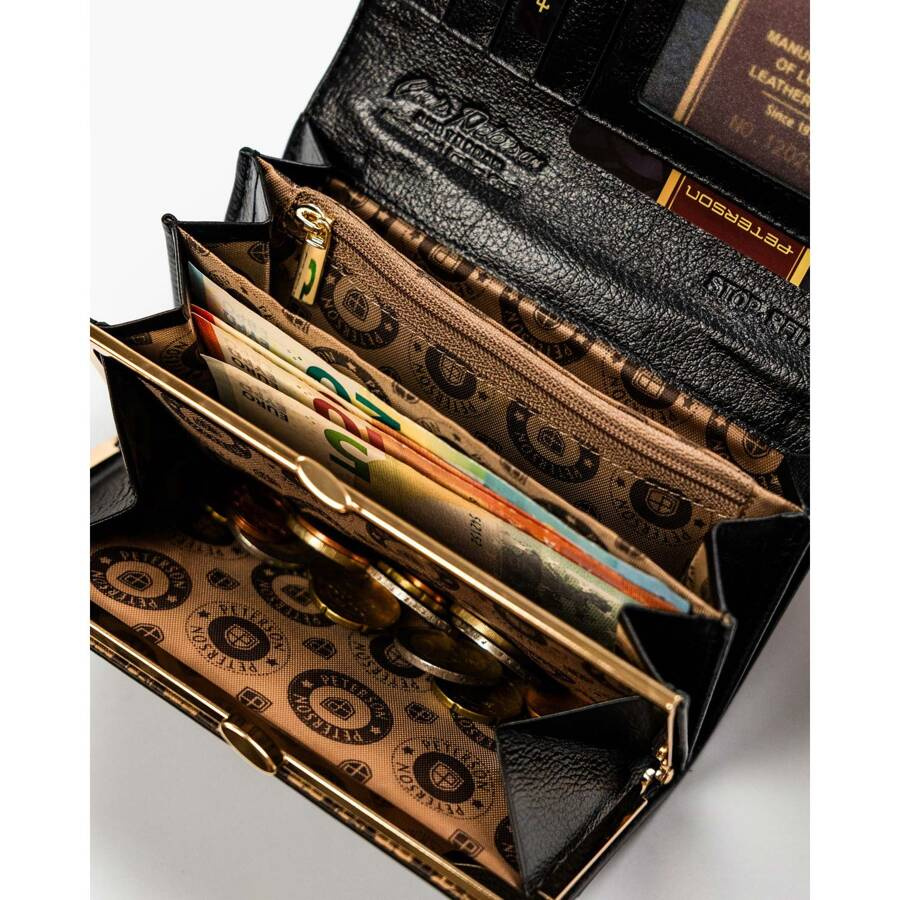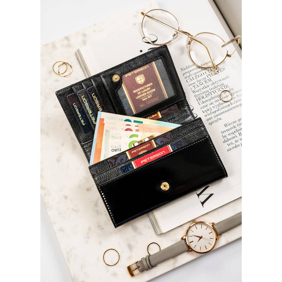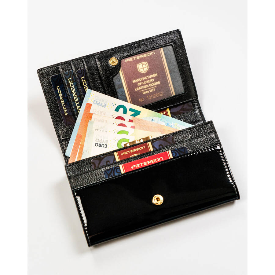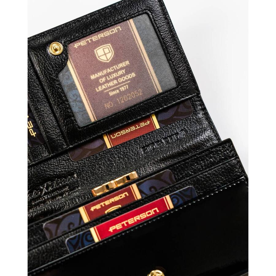 Modny portfel damski ze skóry naturalnej w czerwono-czarnym kolorze zamykany na zatrzask i bigiel – Peterson