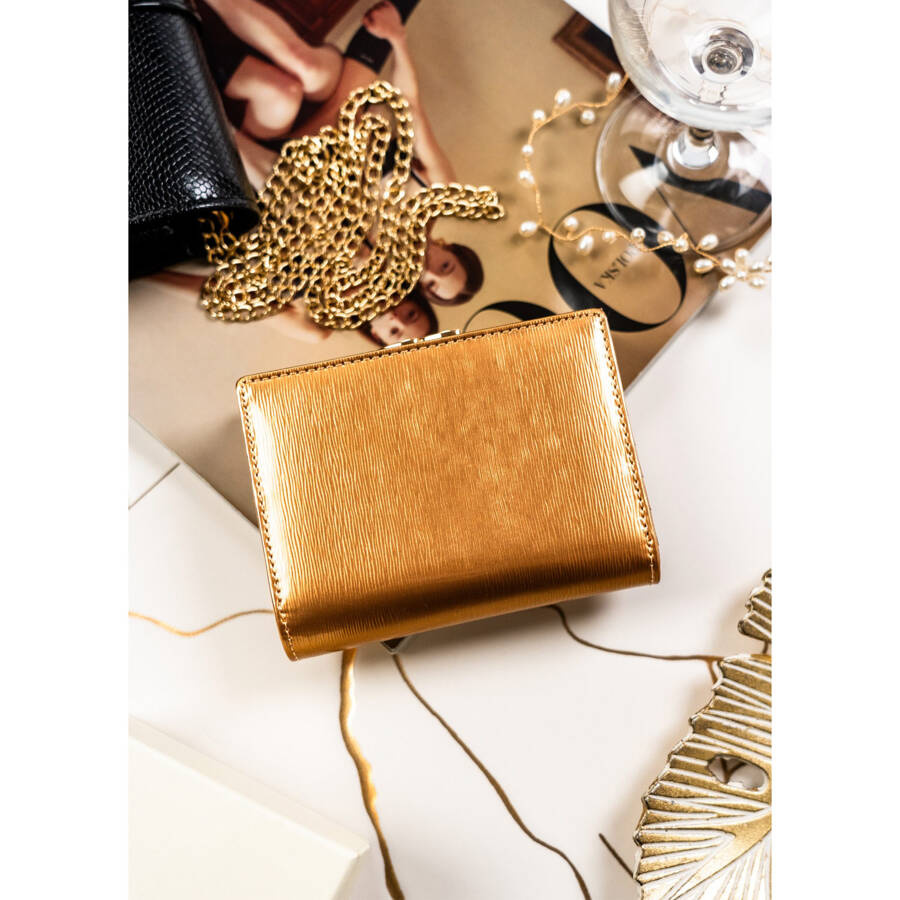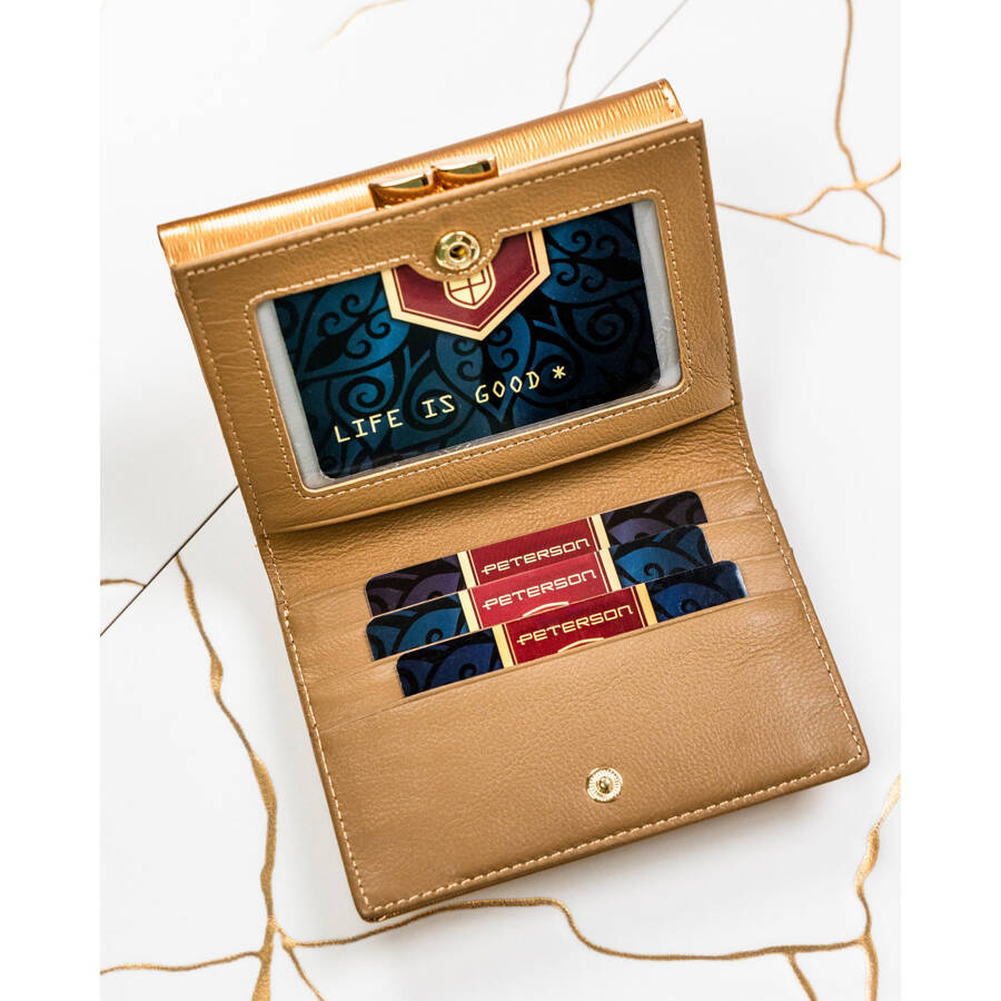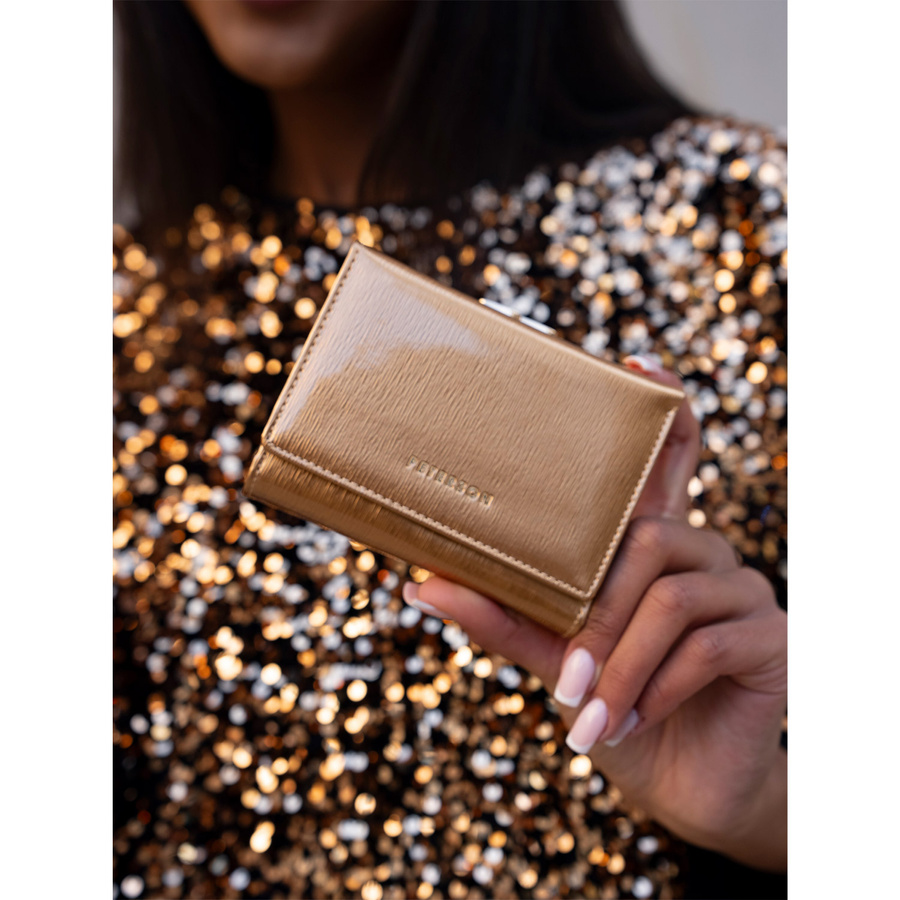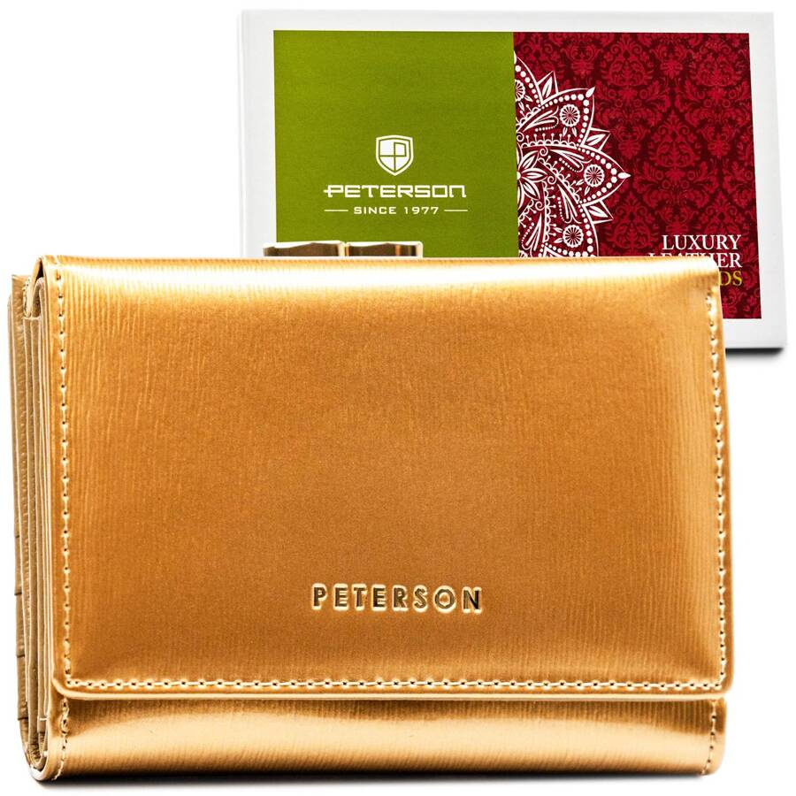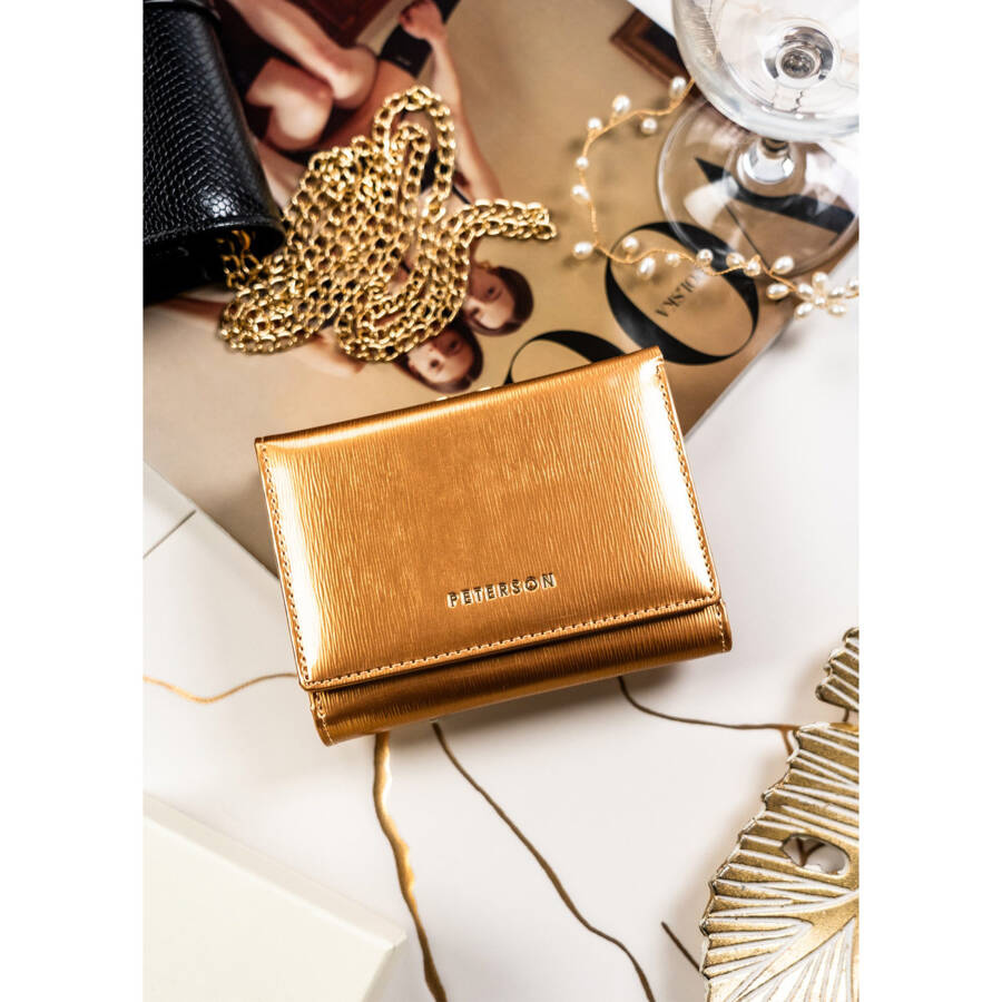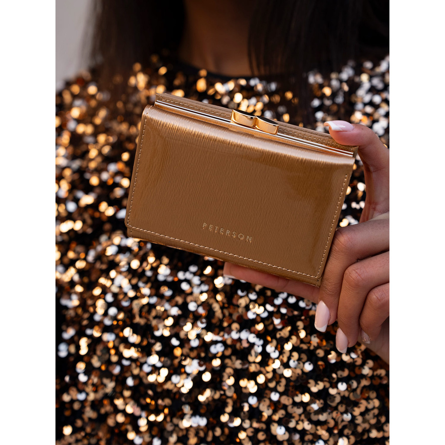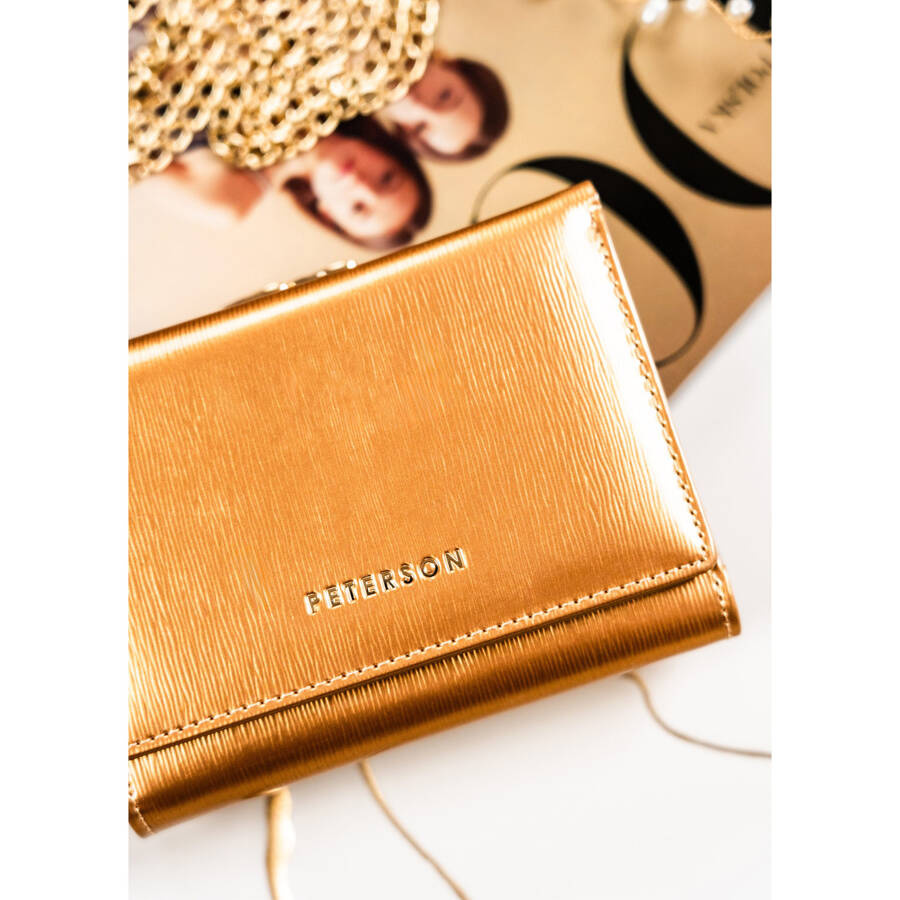 Modny portfel damski złoty z lakierowanej skóry naturalnej – Peterson