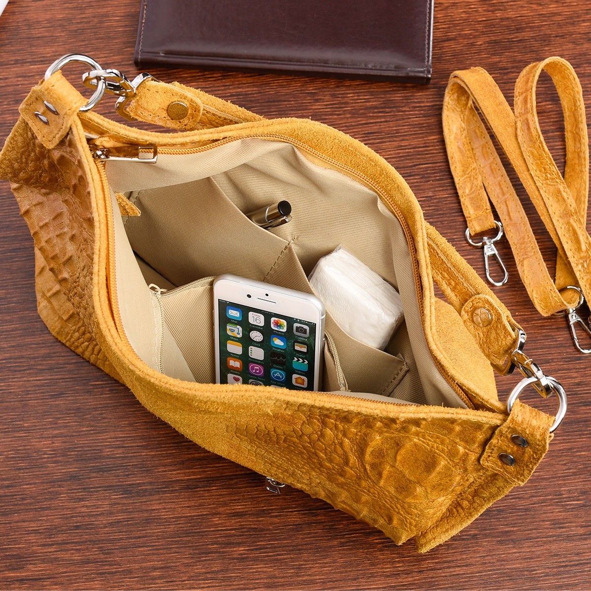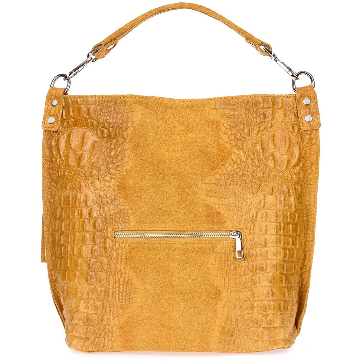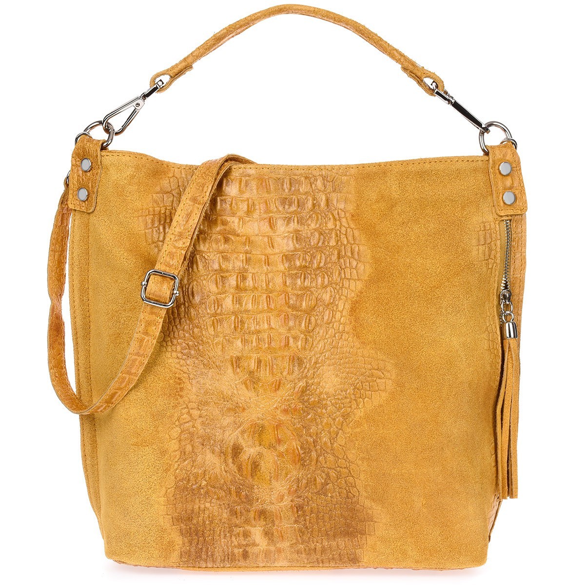 Musztardowa torebka skórzana zamszowa shopper W10