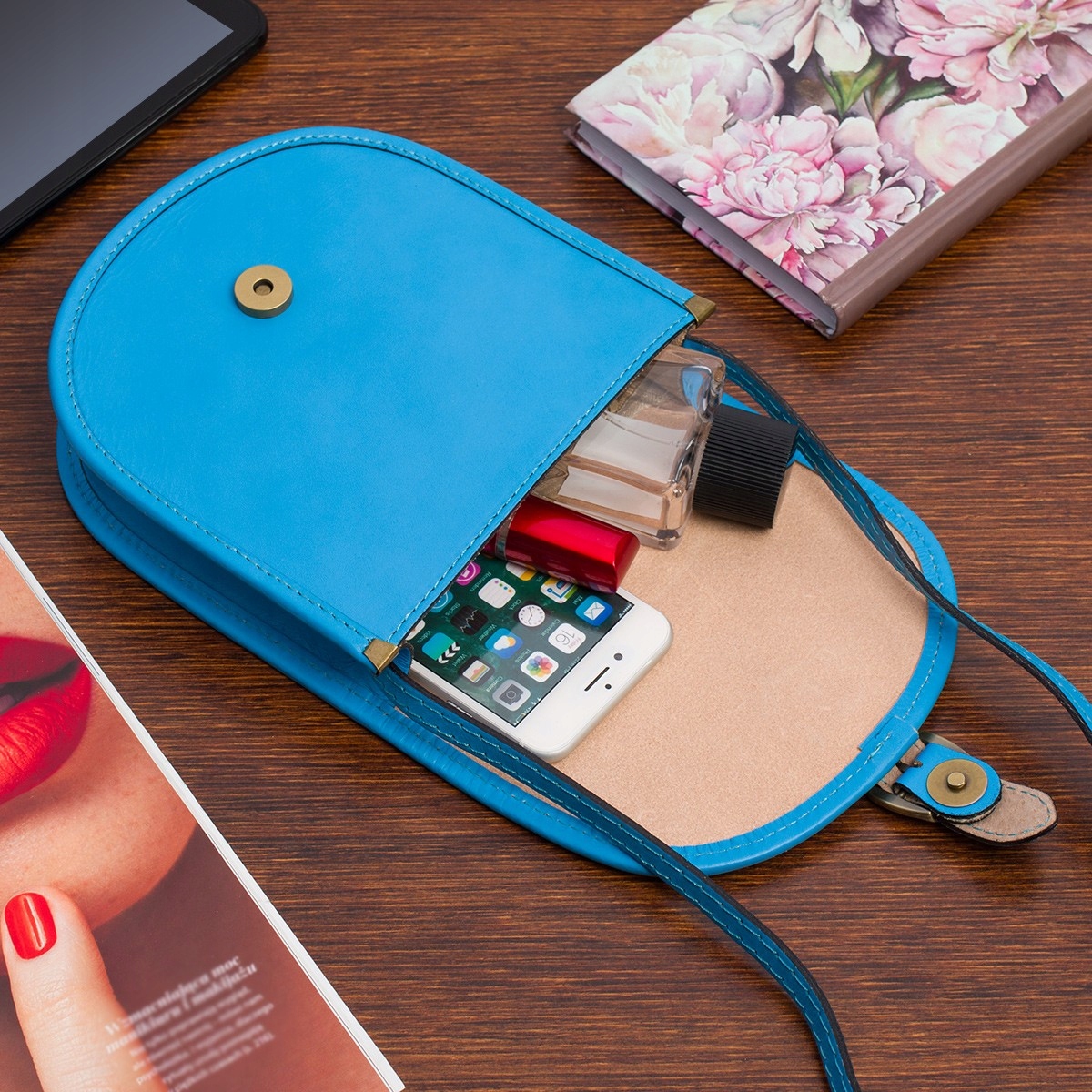 Niebieska Beltimore Damska Skórzana Mała Torebka Listonoszka podkówka sztyw