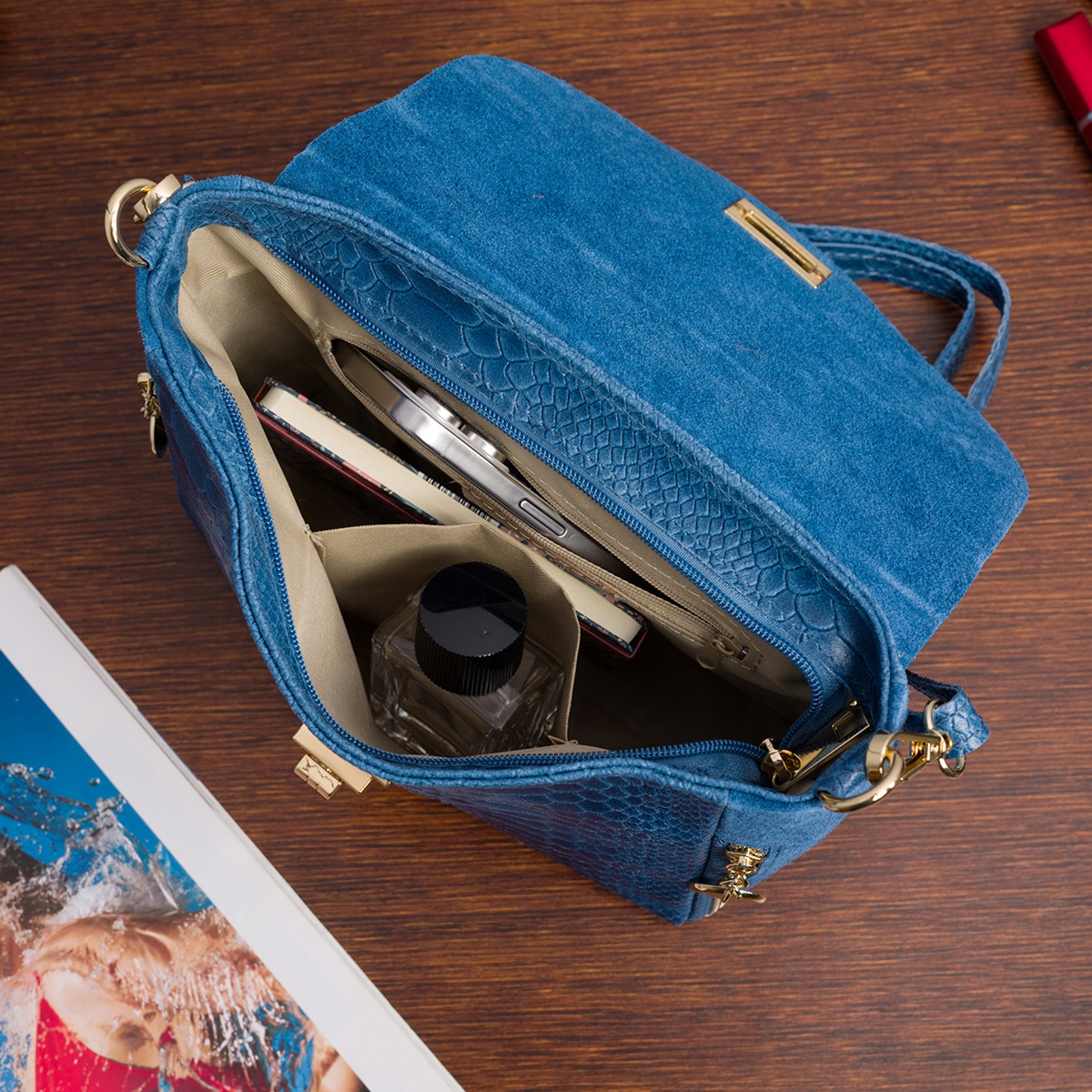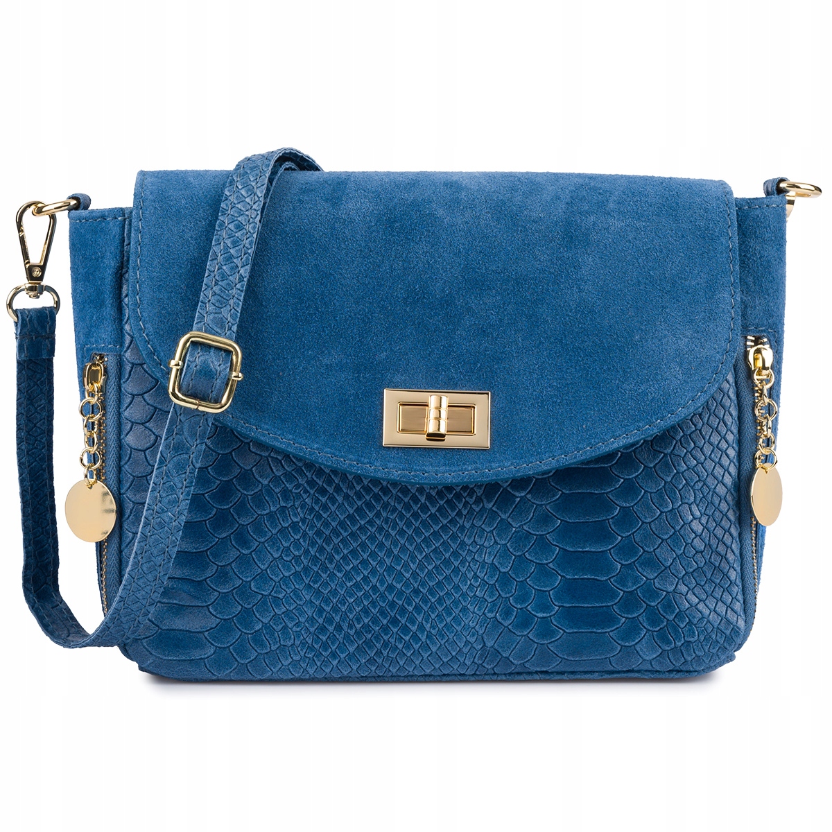 Włoska Torebka Skórzana listonoszka skóra węża zamsz skóra torba wizytowa