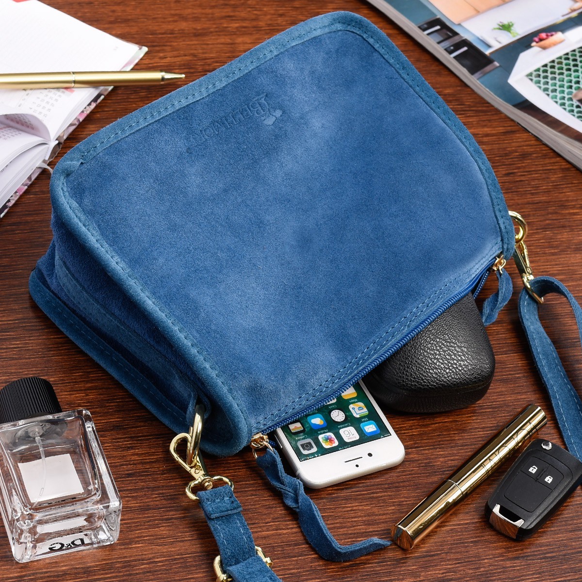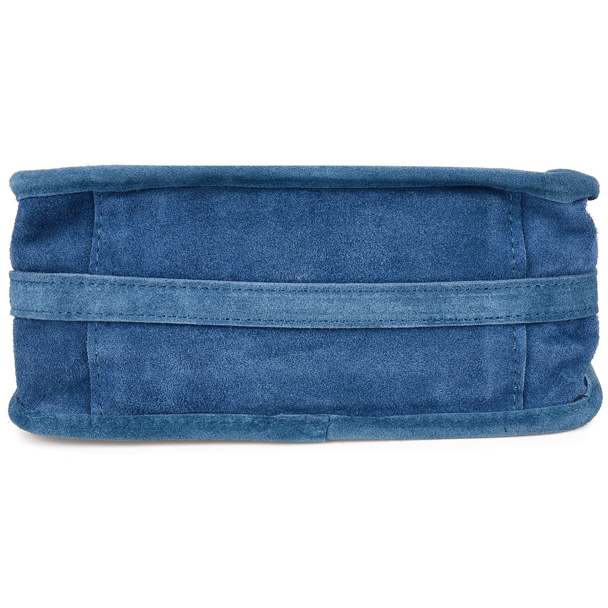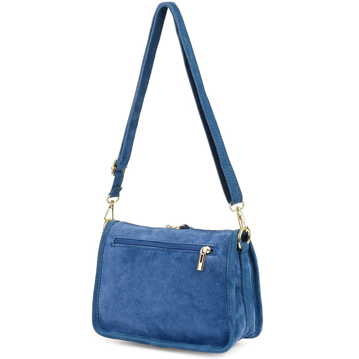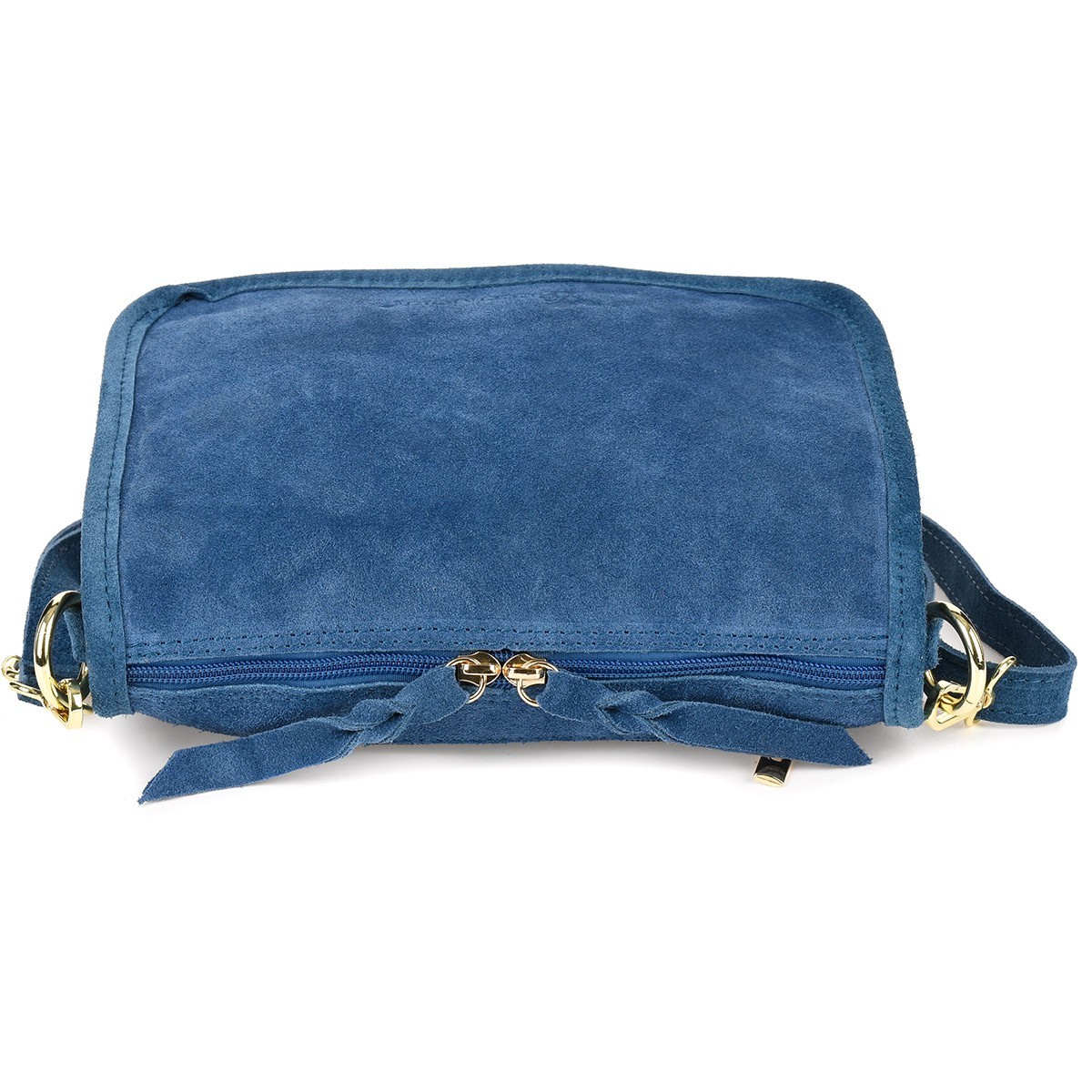 Niebieska skórzana listonoszka damska włoska zamszowa kuferek Beltimore B64