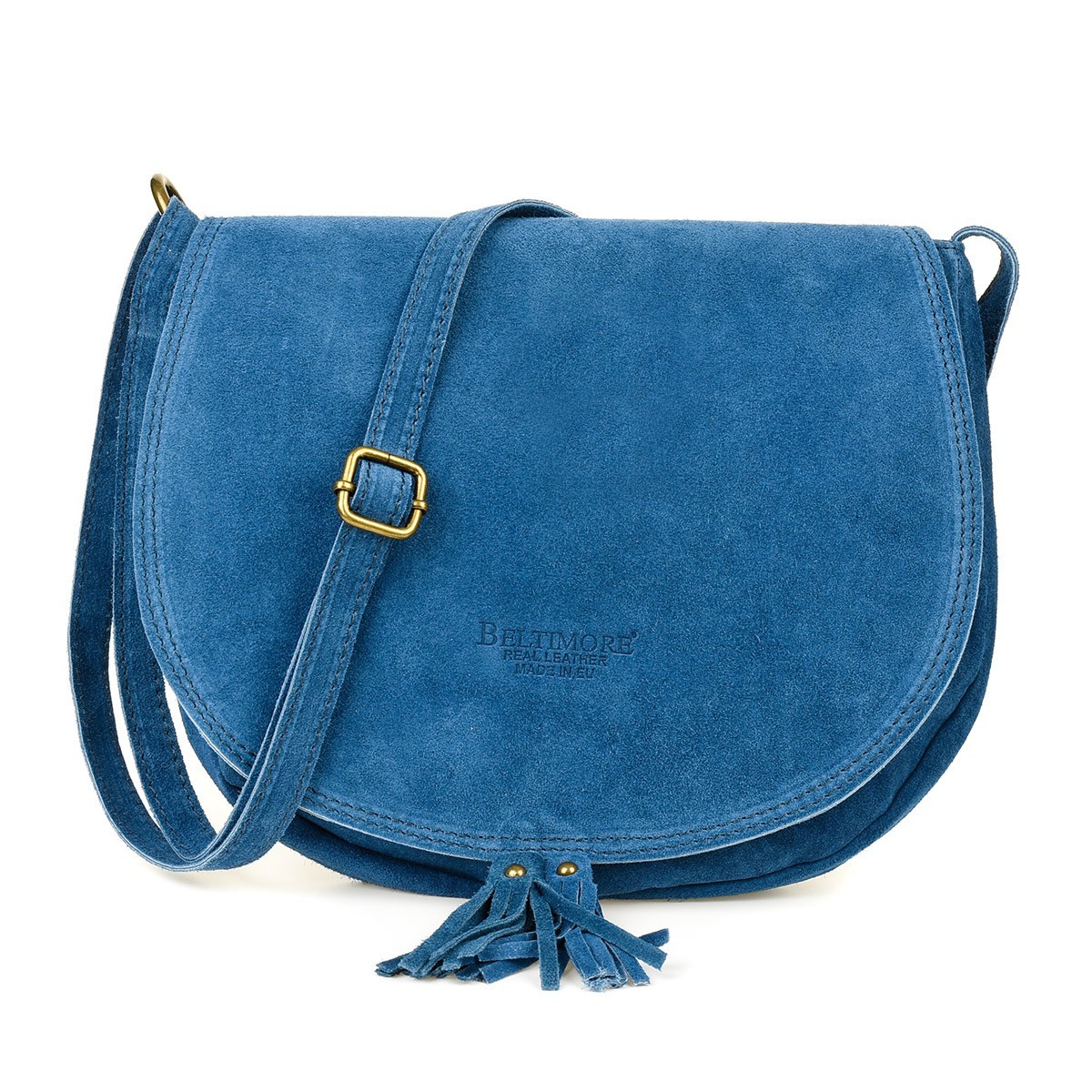 Niebieska Torebka podkówka listonoszka damska skóra włoska miękka B66