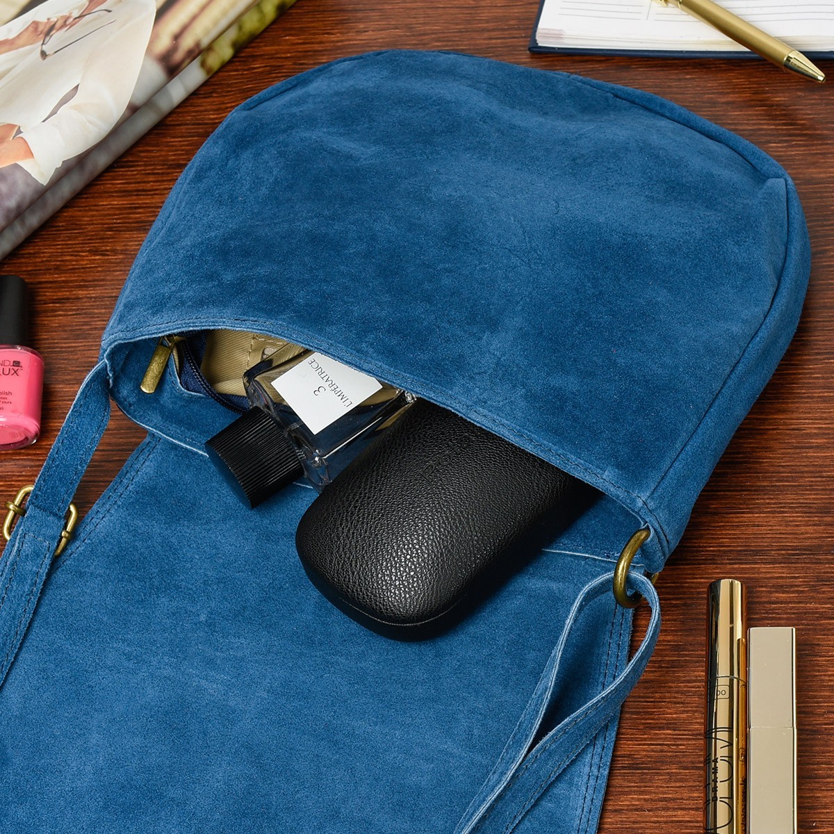 Listonoszka wykonana jest z wyselekcjonowanej naturalnej skóry zamszowej, model MUST-HAVE każdej kobiety.