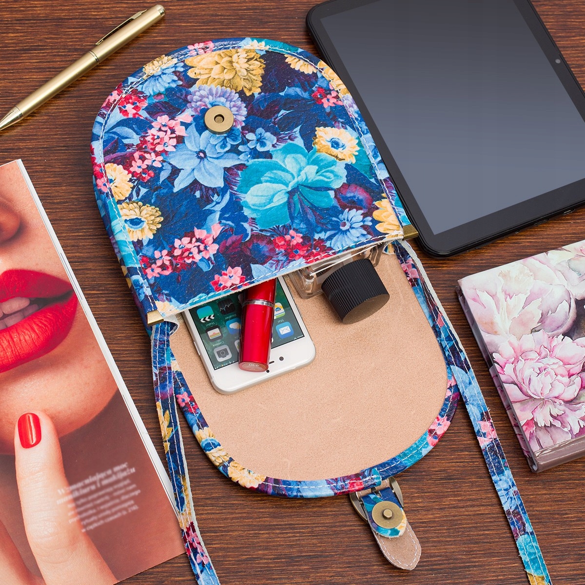 Niebieski kwiat Beltimore Damska Skórzana Mała Torebka Listonoszka podkówka