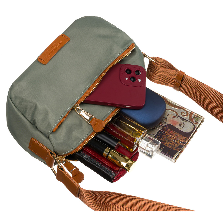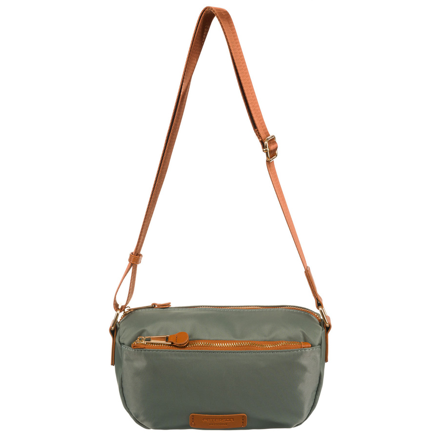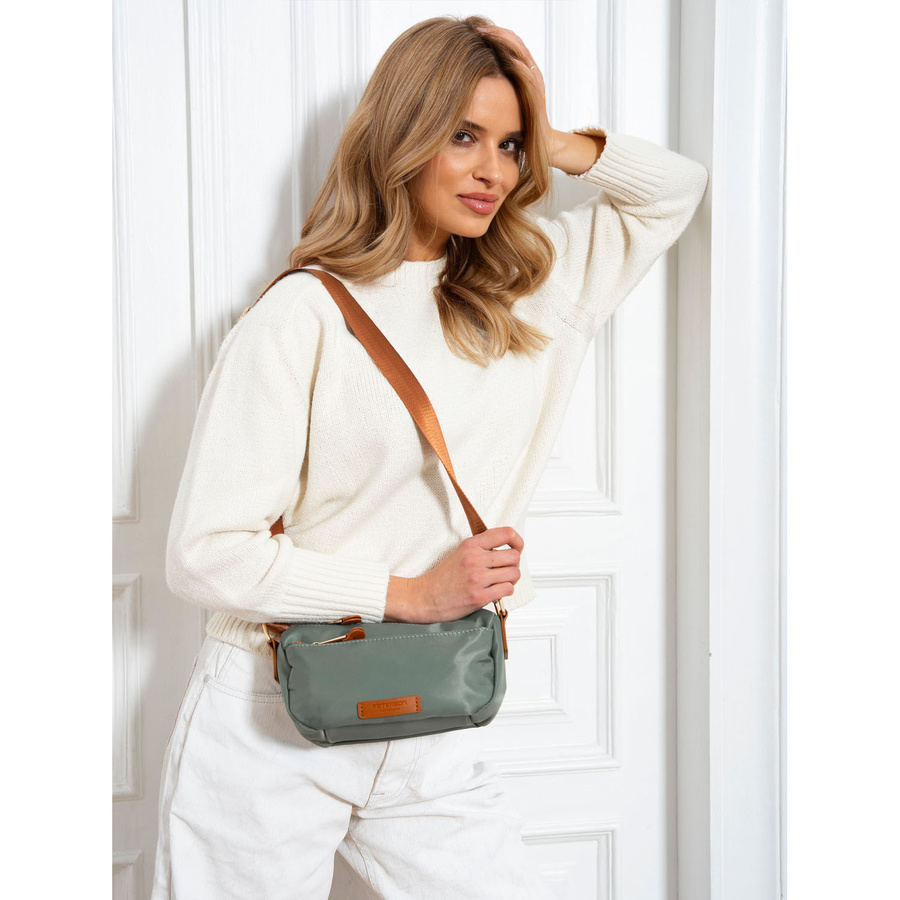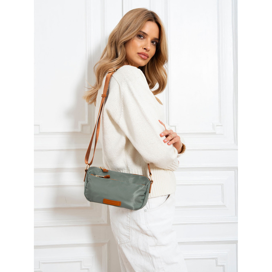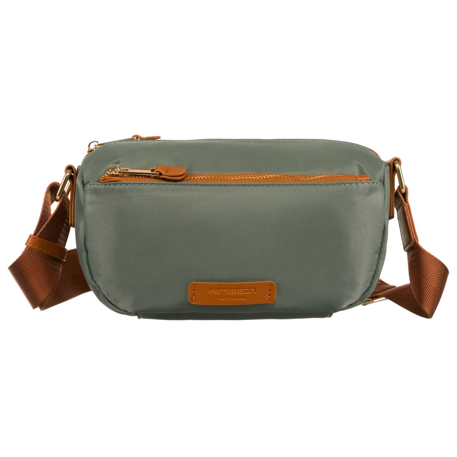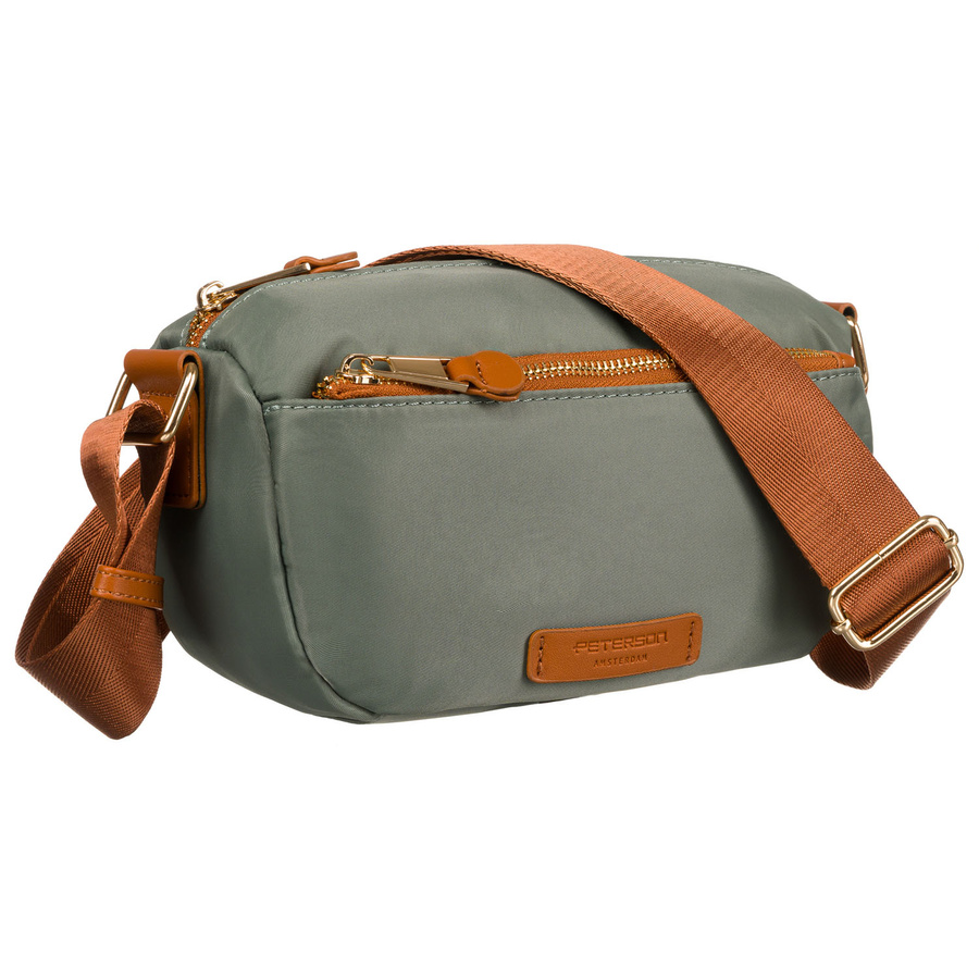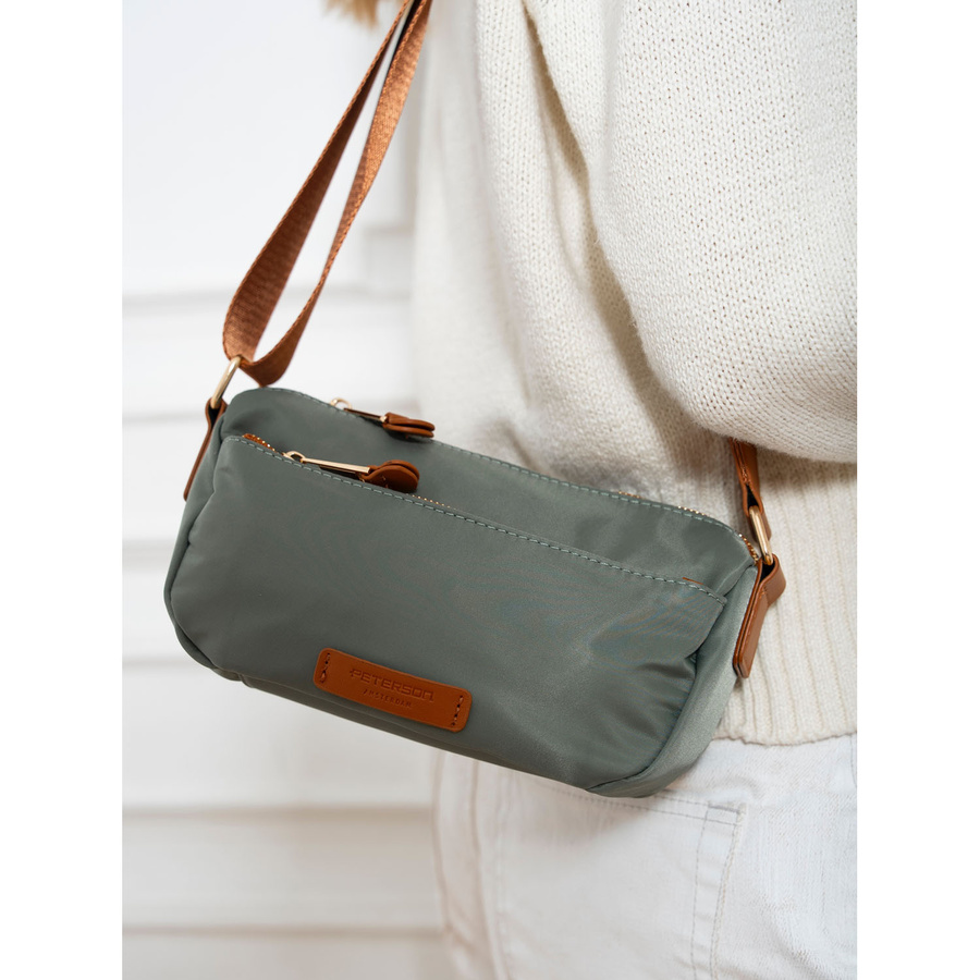 Nylonowa listonoszka damska w zielono-brązowym kolorze zawieszona na regulowanym pasku – Peterson