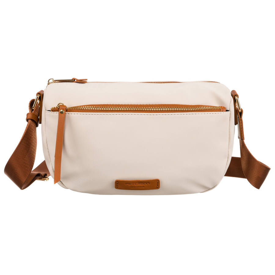 Nylonowa torebka w brązowo-beżowym kolorze z paskiem na ramię - PetersonNylonowa torebka w brązowo-beżowym kolorze z paskiem na ramię – Peterson