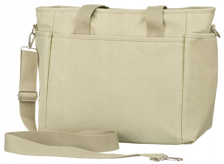 Torebka typu shopper o dużej pojemności – bardzo uniwersalna i wielofunkcyjna. Jednokomorowa zapinana solidnym zamkiem błyskawicznym. Środek obszyty został trwałą, poliestrową podszewką. Wnętrze wyposażone w:
