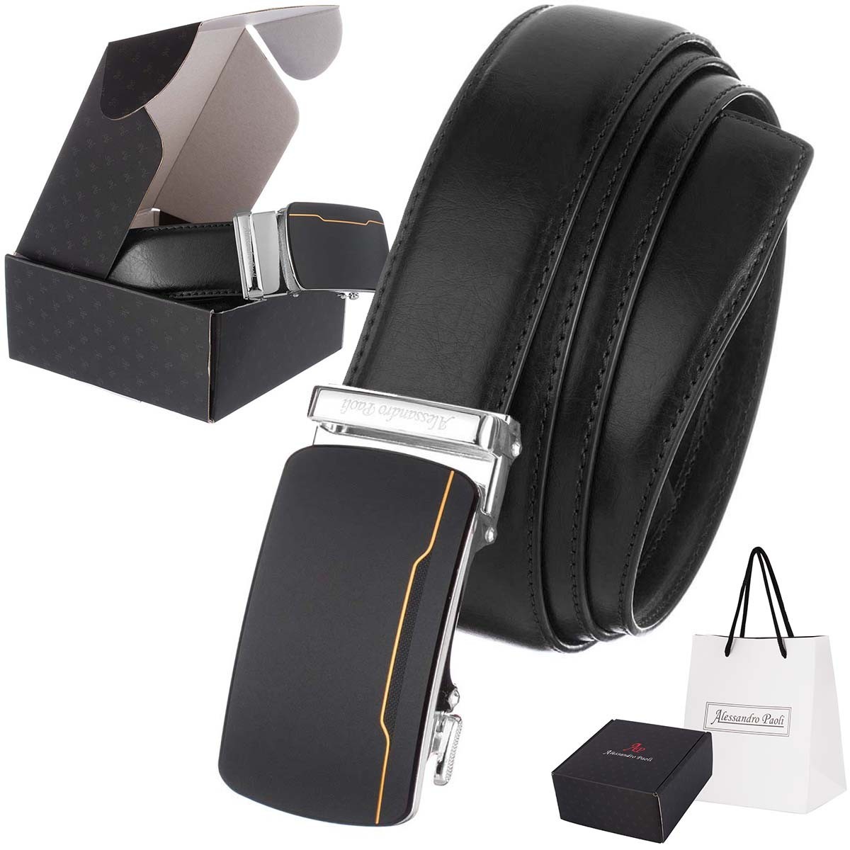 - Pudełko: Do każdego paska dołączamy pudełko i torebkę prezentową- zestaw doskonale nadaje się na prezent dla mężczyzny.
