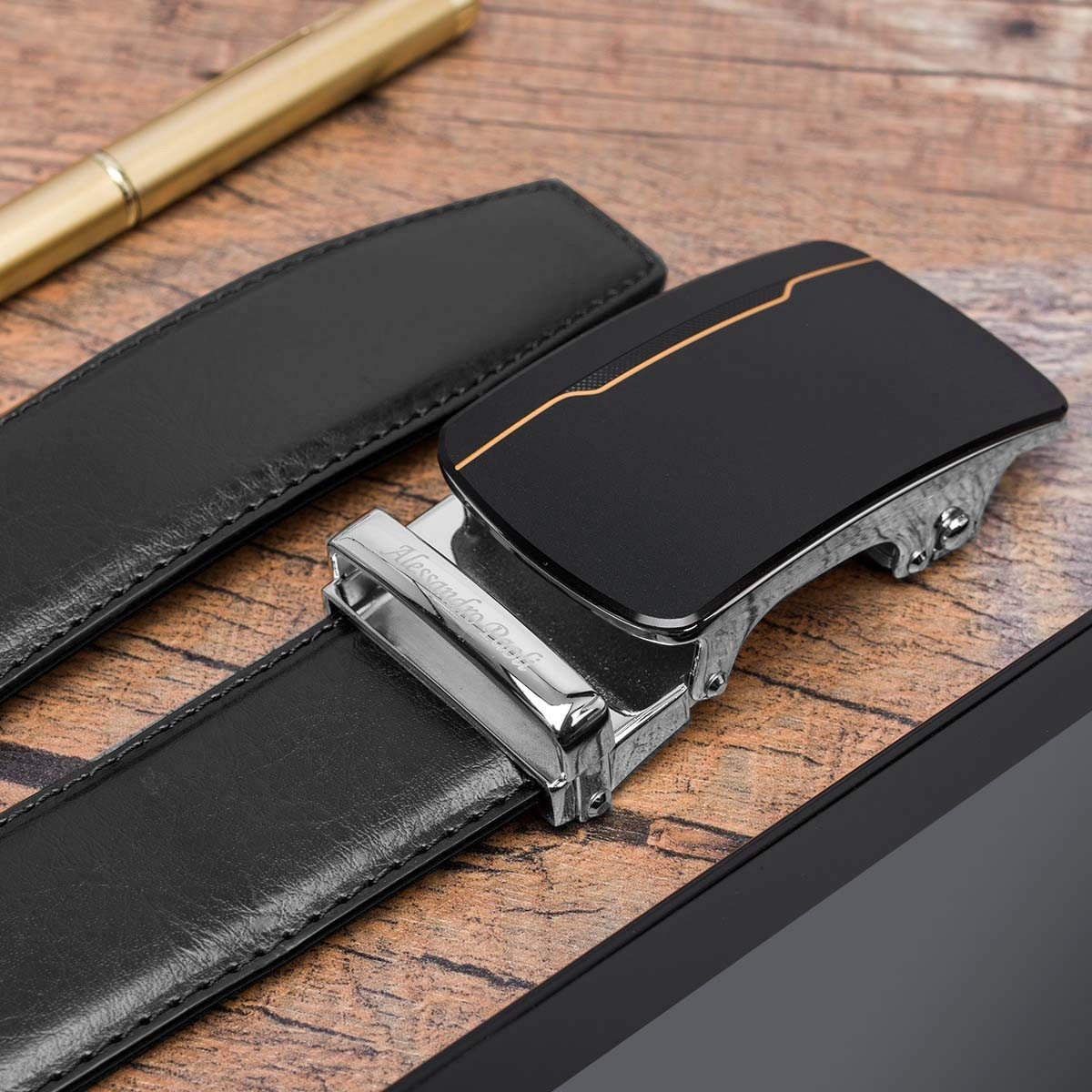 Czarny pasek z delikatnie zdobioną klamrą automatyczną znanej marki Alessandro Paoli®, to elegancki męski dodatek wykonany z wysokiej jakości skóry naturalnej, który nie tylko doskonale spełni swoje podstawowe funkcje, ale także doda stylu Twojej garderobie. Pasek wpisuje się w wszelkie kanony elegancki, praktyki i wygody. Ponadczasowy design i uniwersalny mechanizm będzie gwarancją zadowolenia każdego mężczyzny.