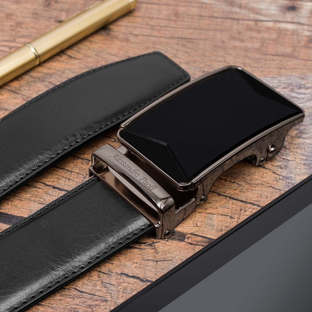 Czarny pasek z klasyczną lekko połyskującą, czarną klamrą automatyczną znanej marki Alessandro Paoli®, to elegancki męski dodatek wykonany z wysokiej jakości skóry naturalnej, który nie tylko doskonale spełni swoje podstawowe funkcje, ale także doda stylu Twojej garderobie. Pasek wpisuje się w wszelkie kanony elegancki, praktyki i wygody. Ponadczasowy design i uniwersalny mechanizm będzie gwarancją zadowolenia każdego mężczyzny.