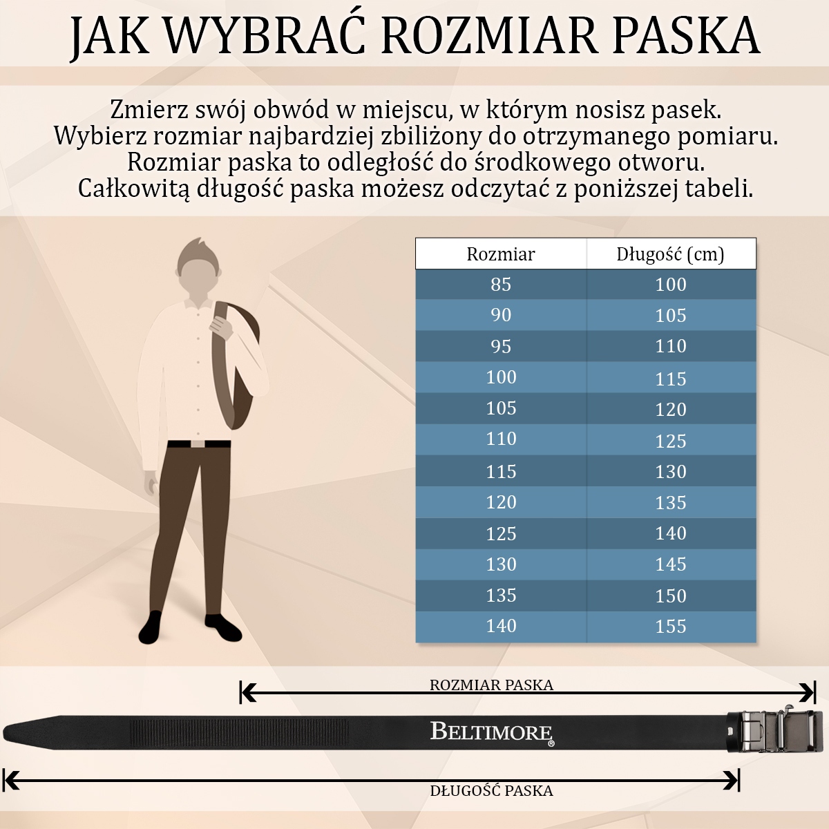 ? Pasek jest uniwersalny i elegancki – pasek nie ma dodatkowych wytłoczeń na skórze – jedynie na odwroci jest sygnowane logo marki