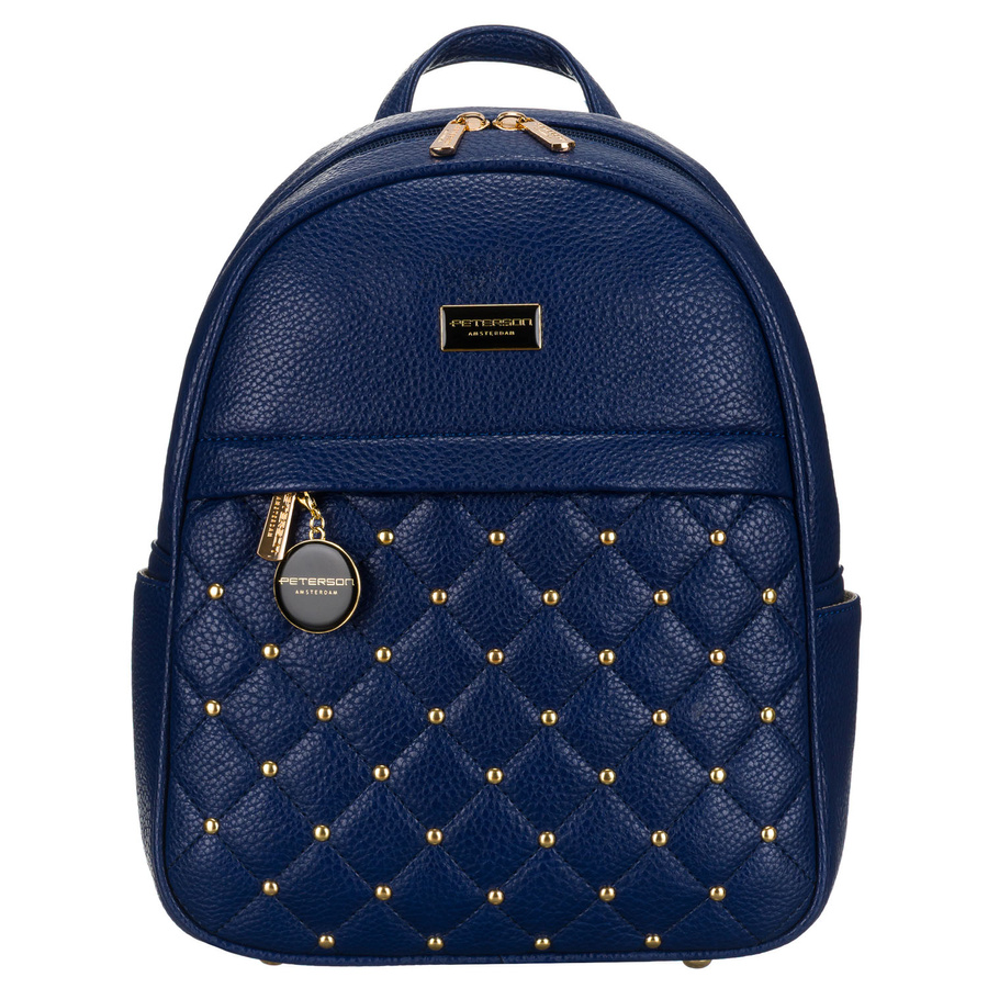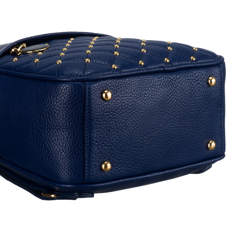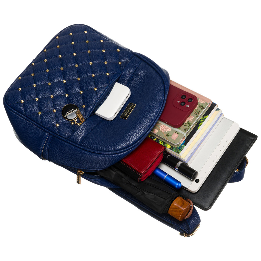Pikowany, modny granatowy plecak damski zdobiony złotymi nitami eko skóra Peterson