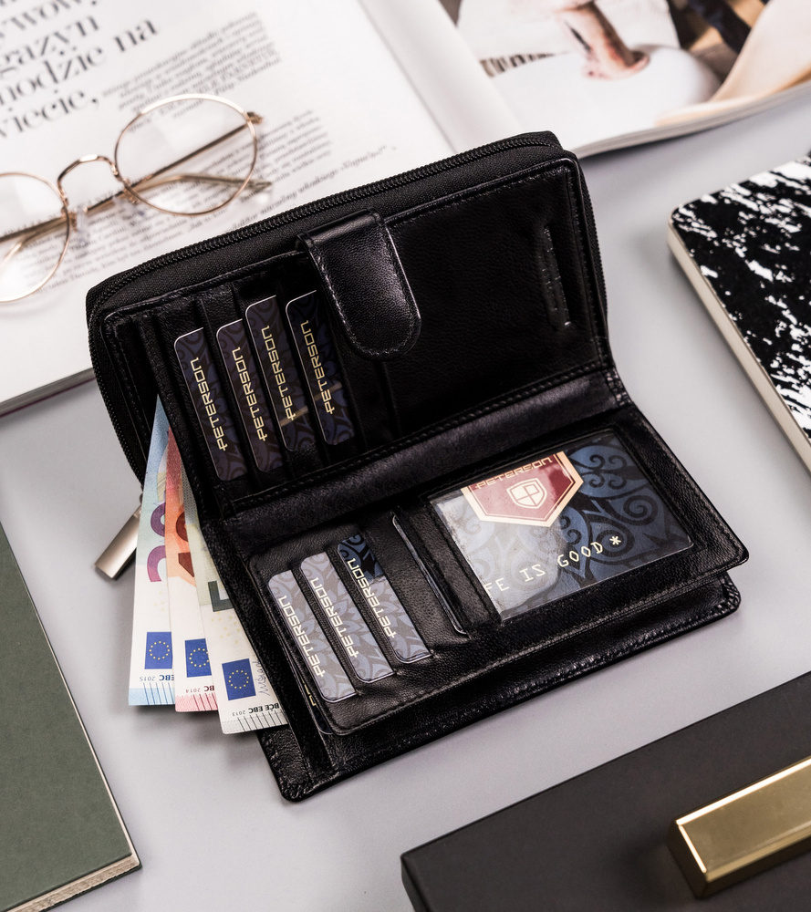 Pionowy portfel damski ze skóry naturalnej — Peterson