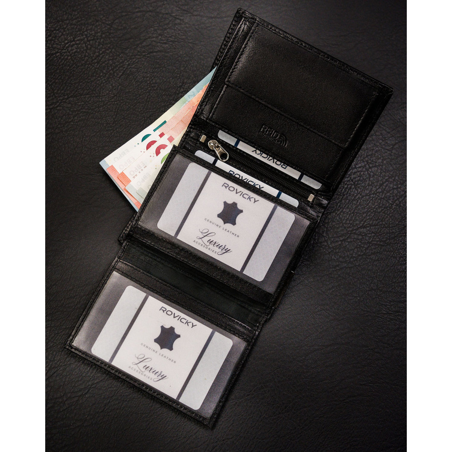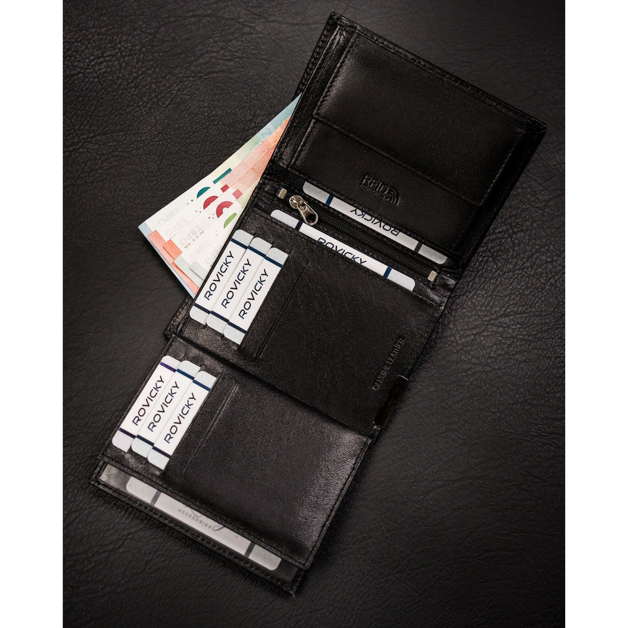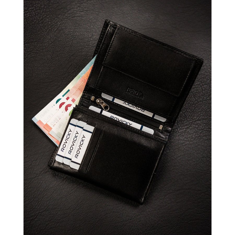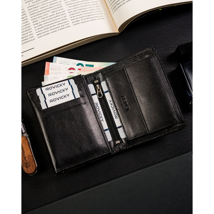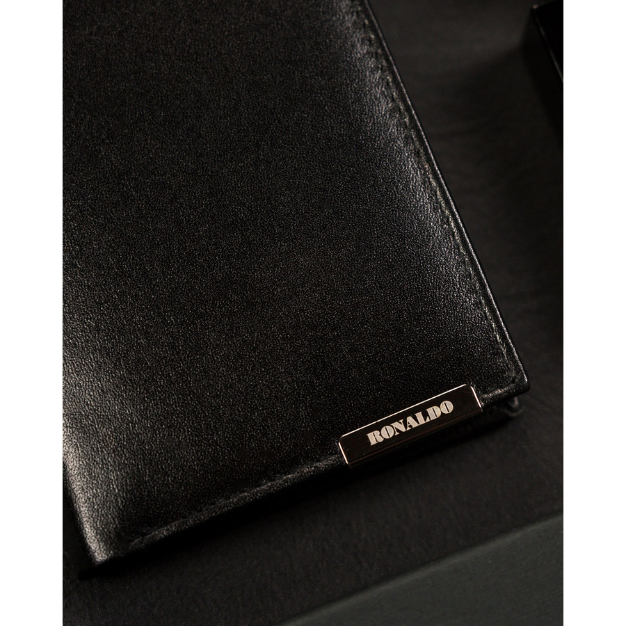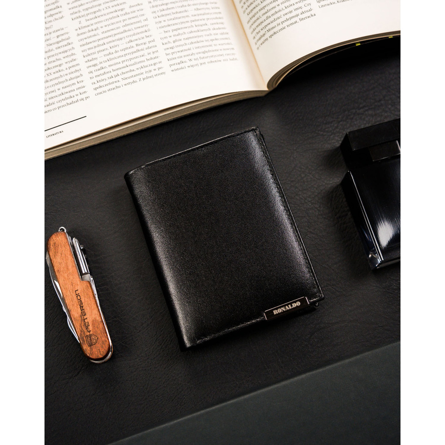 Pionowy portfel męski ze skóry naturalnej w czarnym kolorze bez zapięcia zewnętrznego – Ronaldo