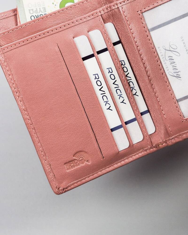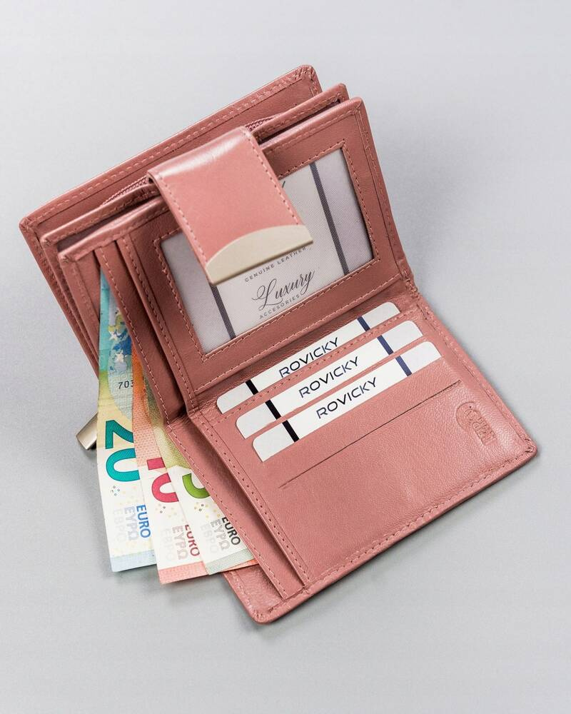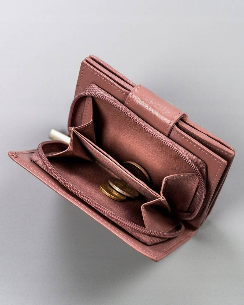 Portfel mimo średniego rozmiaru jest wystarczająco pojemny. Kieszenie na banknoty i monety są odpowiednio duże, by móc je w nich swobodnie przechowywać. Kieszenie te, wyściełane są odporną na otarcia podszewką.