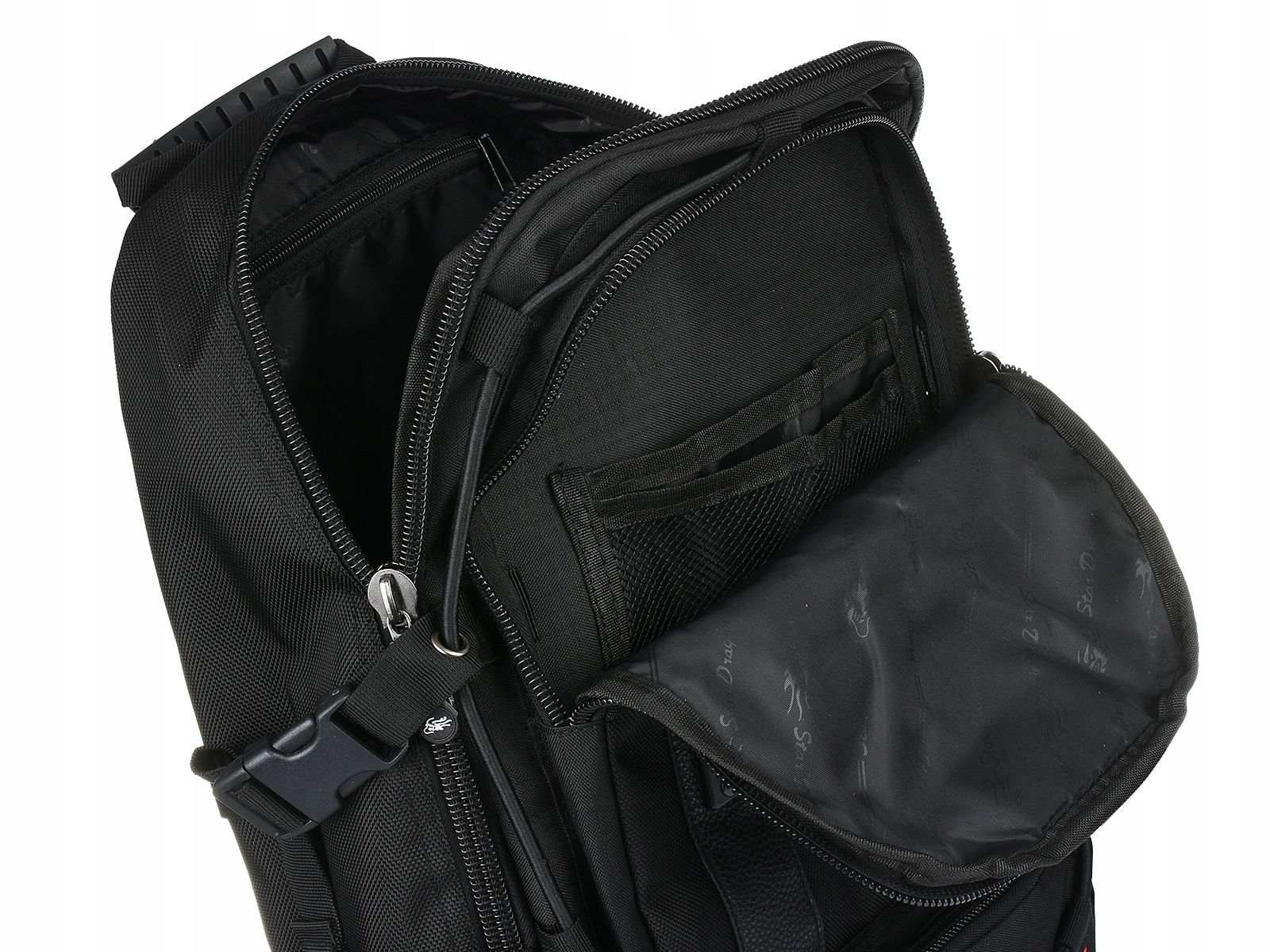• Regulacja: Po bokach są regulowane taśmy pozwalające na zmienianie objętości plecaka