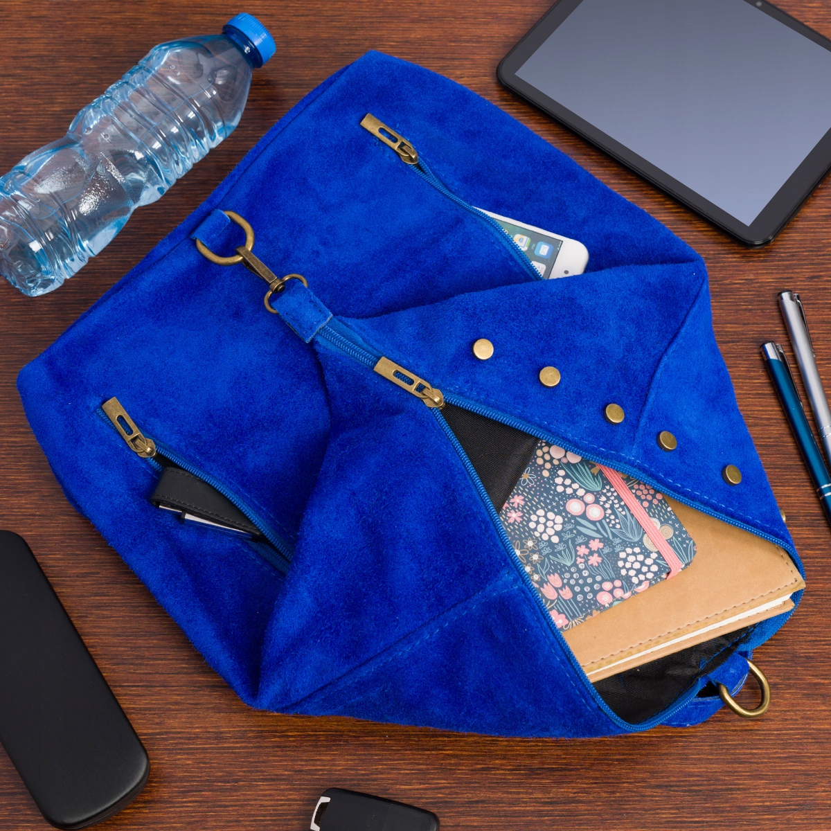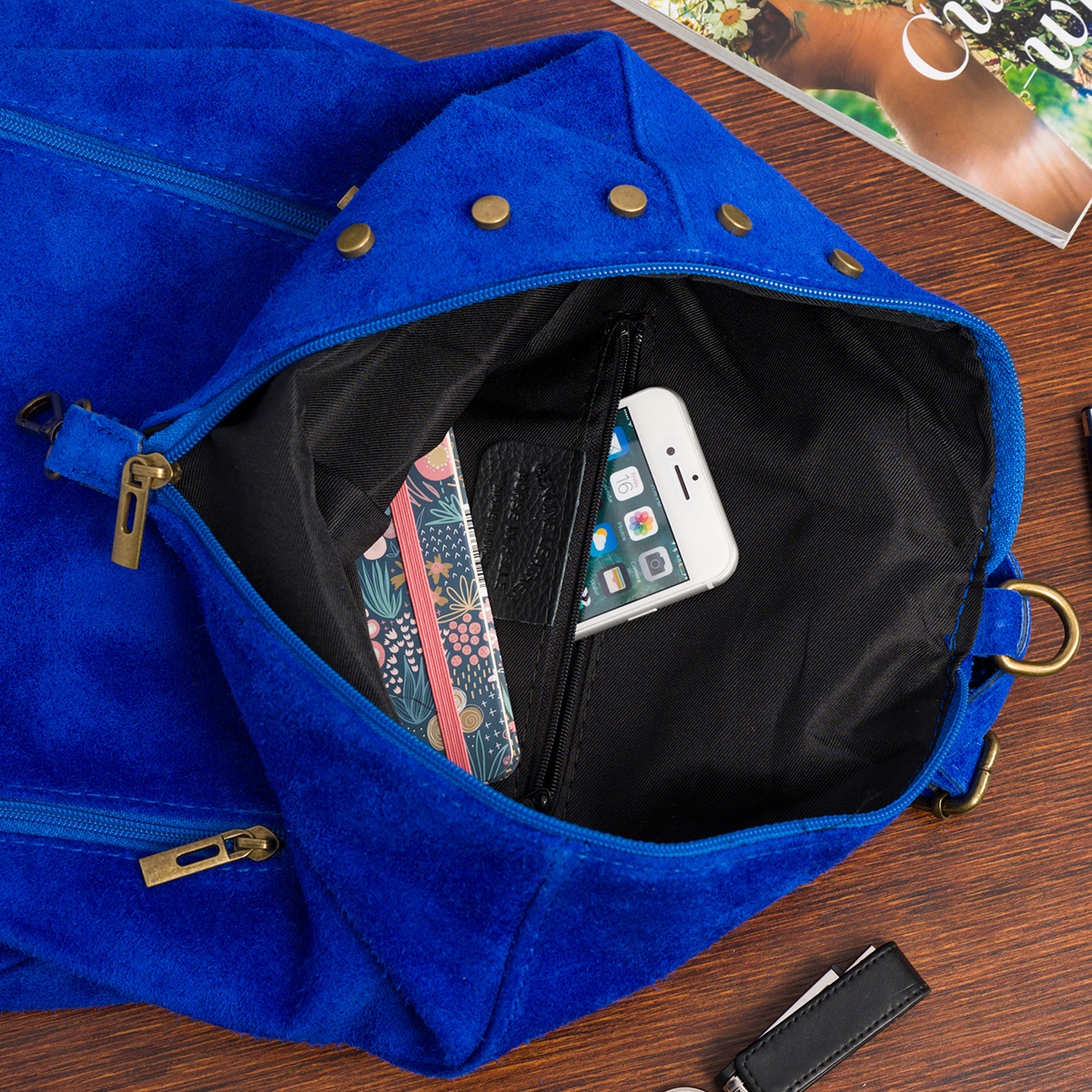 Swobodnie pomieści format A4. Uchwyt i regulowane szelki również skórzane!