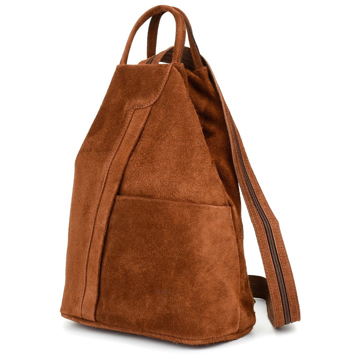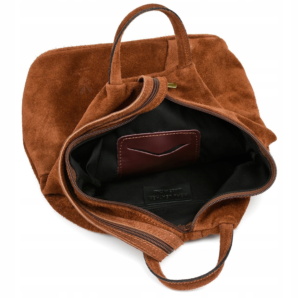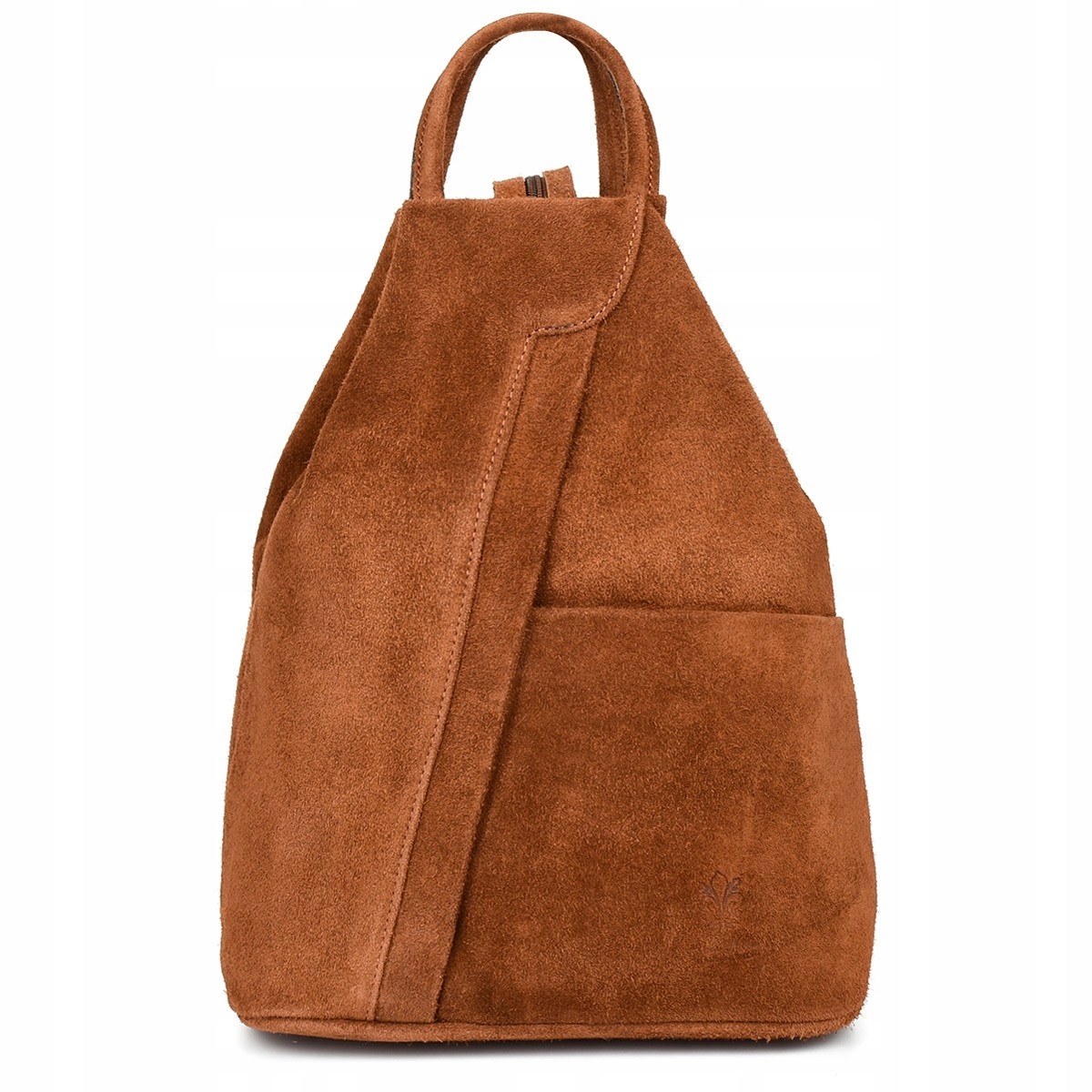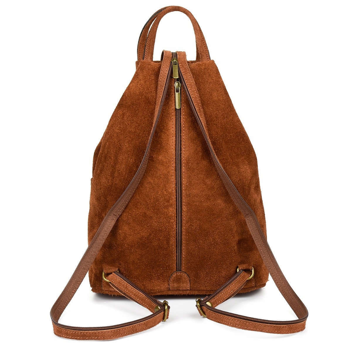 Plecak damski zamszowy skórzany plecaczek włoski koniak Vera Pelle T53