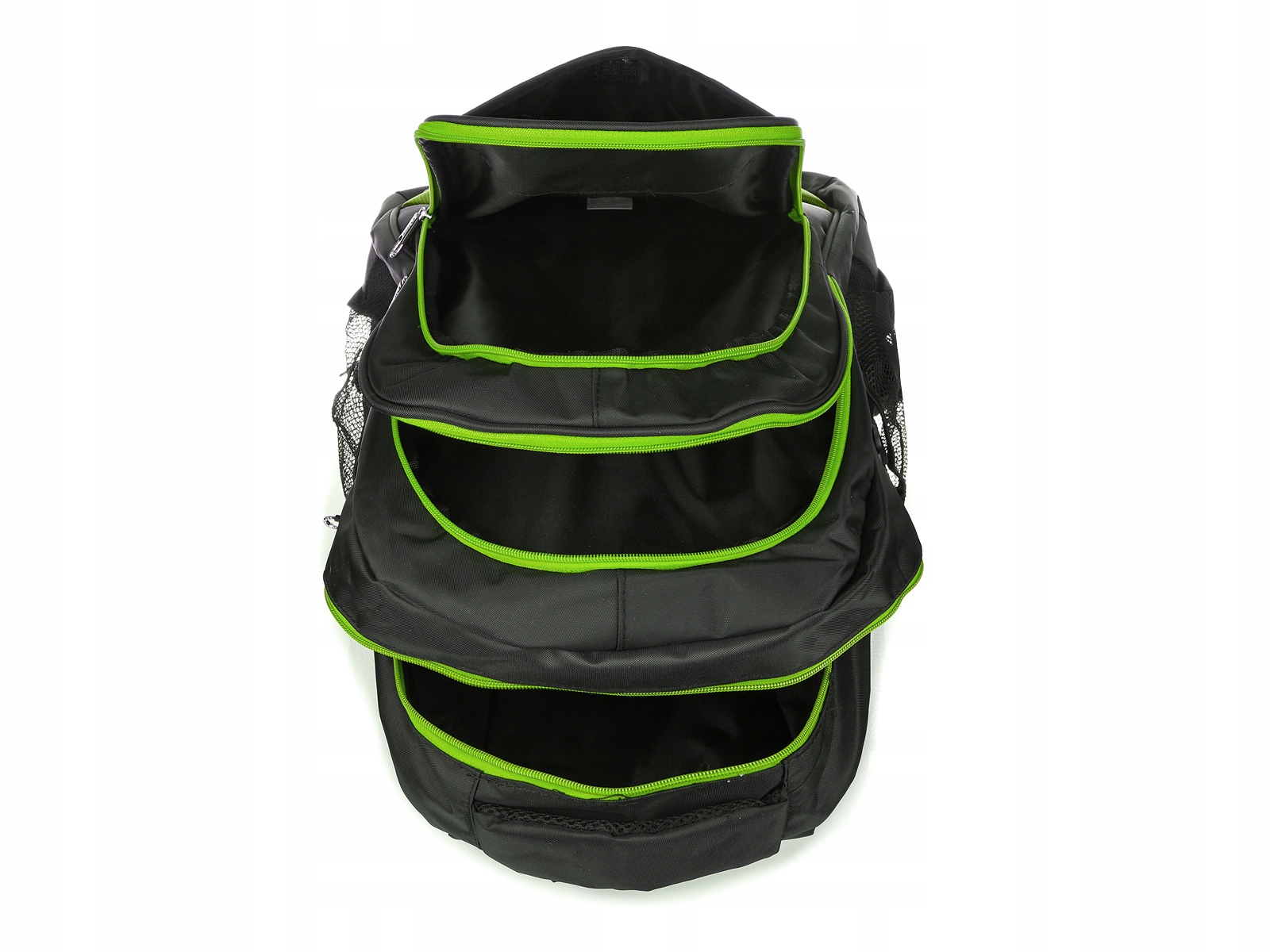 - Wnętrze plecaka to trzy zasuwane komory swobodnie mieszczące format A4
