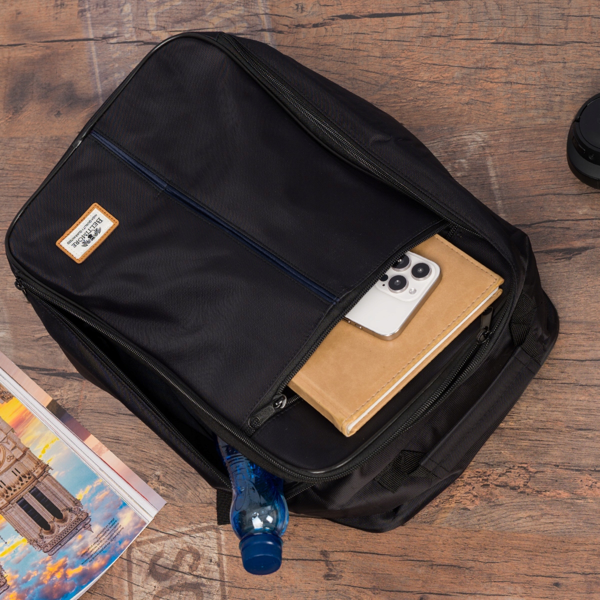 ✈Plecak podróżny Beltimore Q77 czarny z granatową wstawką – Twój Idealny Bagaż Podręczny do Samolotu! ✈️