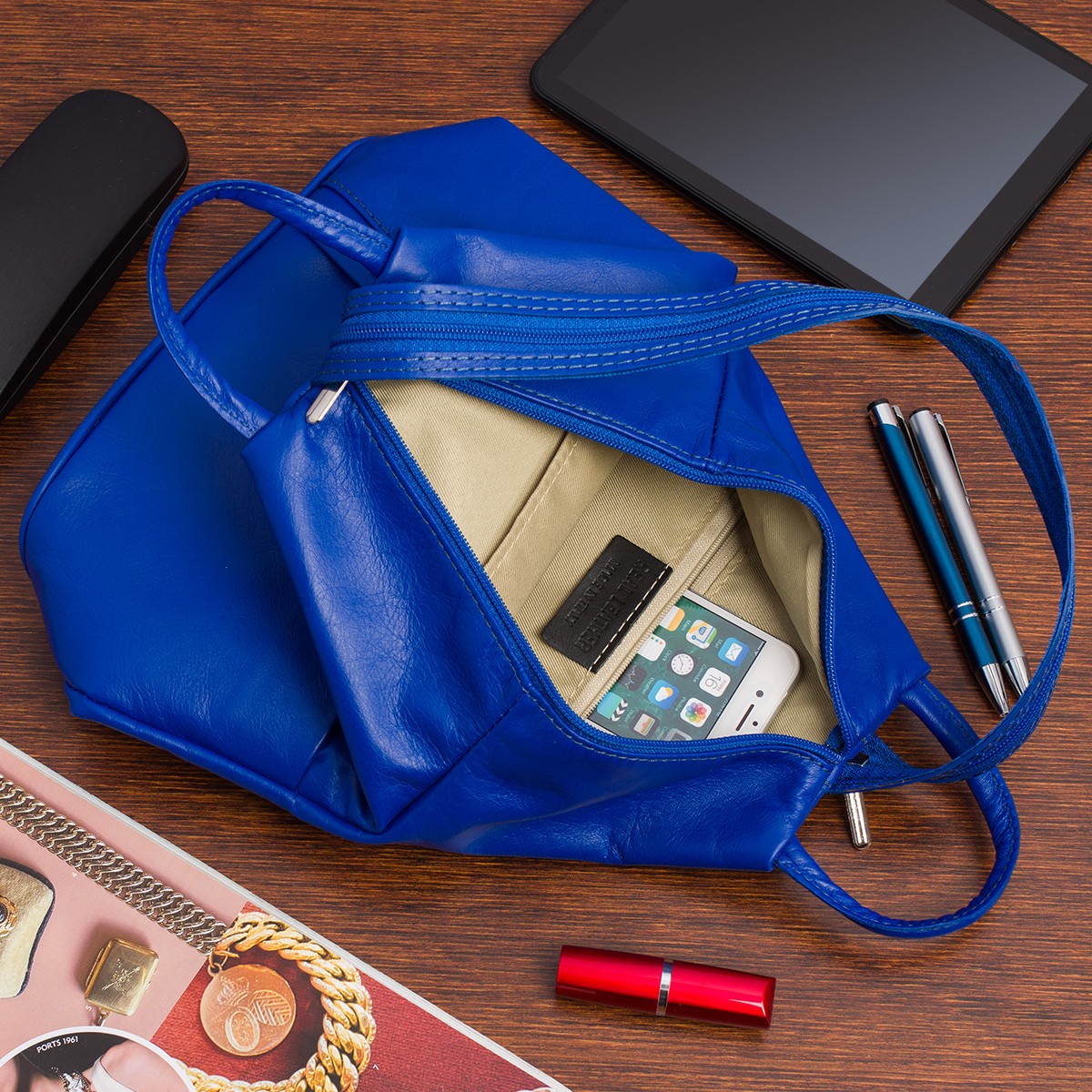 - Kieszenie wewnętrzne: – 2 boczne, małe, na telefon, klucze lub inne drobiazgi: 1 zasuwana i 1 otwarta