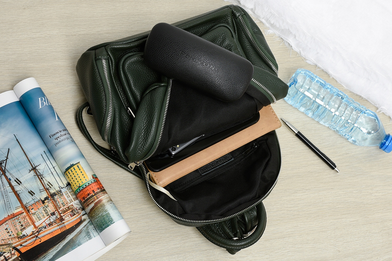 Włoski Plecak Skórzany damski Skóra Naturalna U21 – w tej ofercie dostępny w kolorze butelkowej zieleni ♥