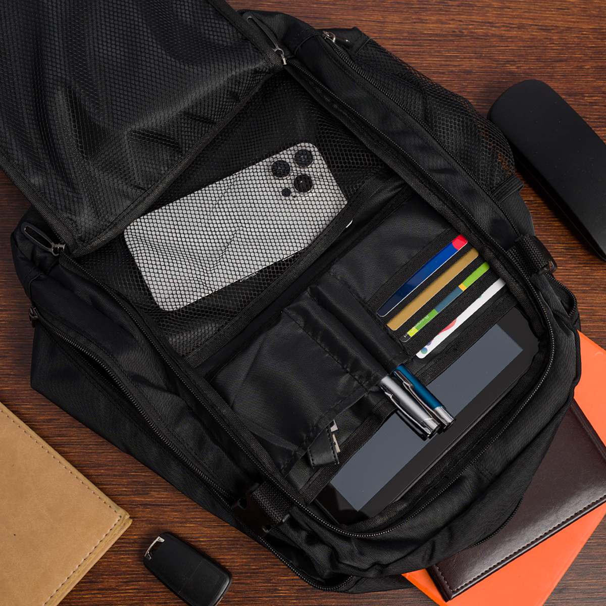 ? Pierwsza komora: Idealne miejsce na laptopa, drona, ubrania i inne niezbędne przedmioty w podróży.