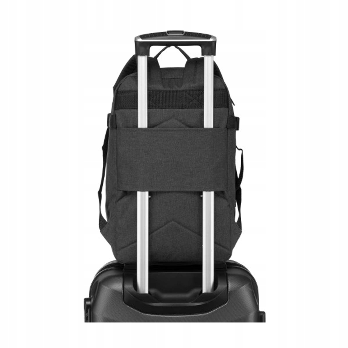 ☑ Uchwyt na walizkę: Na tylnej ścianie plecaka znajduje się praktyczny uchwyt do zaczepienia o rączkę walizki podróżnej.