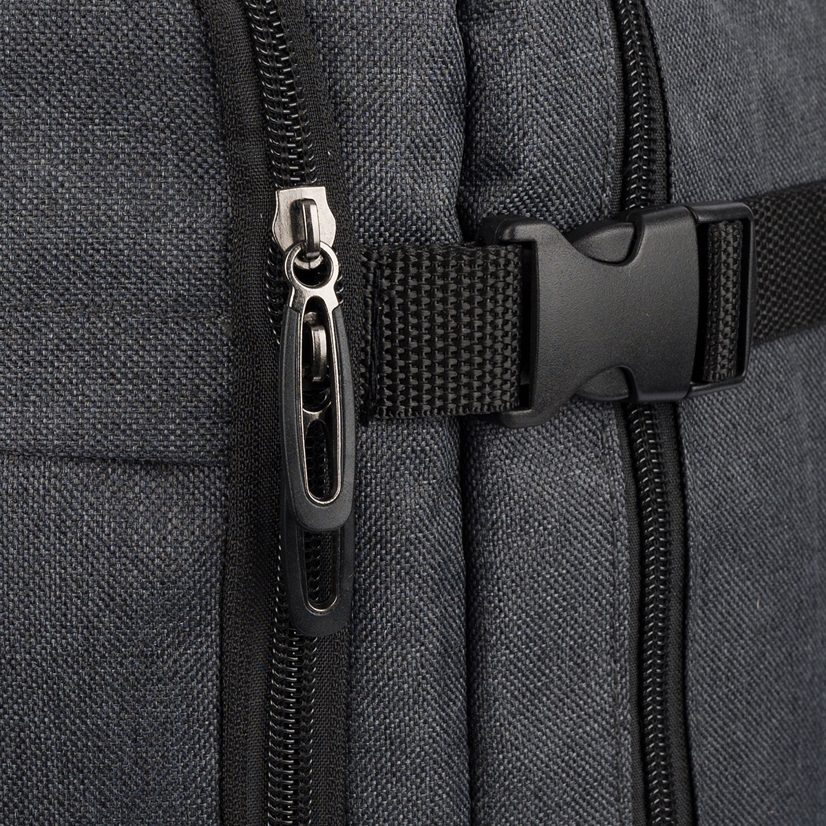 Plecak posiada 2 dodatkowe pasy boczne z zapięciem typu FASTEX wykonane z mocnego tworzywa ABS. Pełnią funkcję kompresyjną (zmniejszenia plecaka).