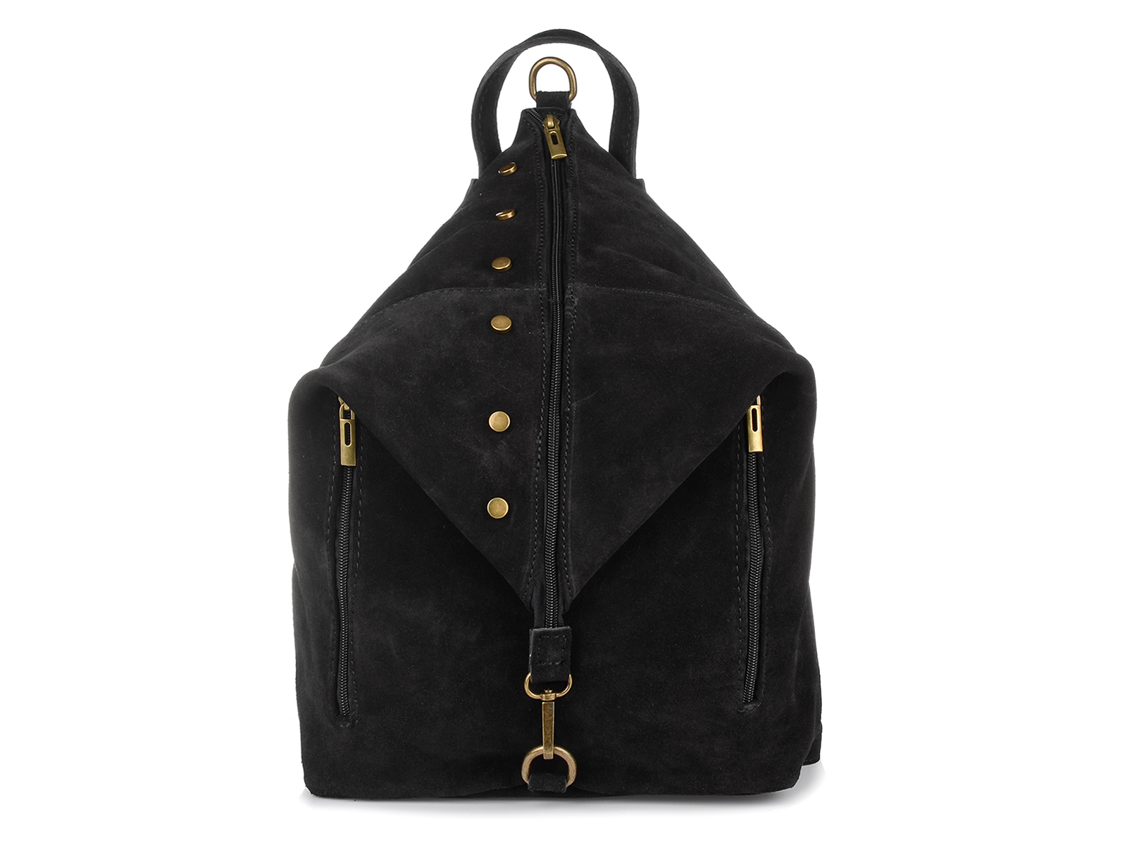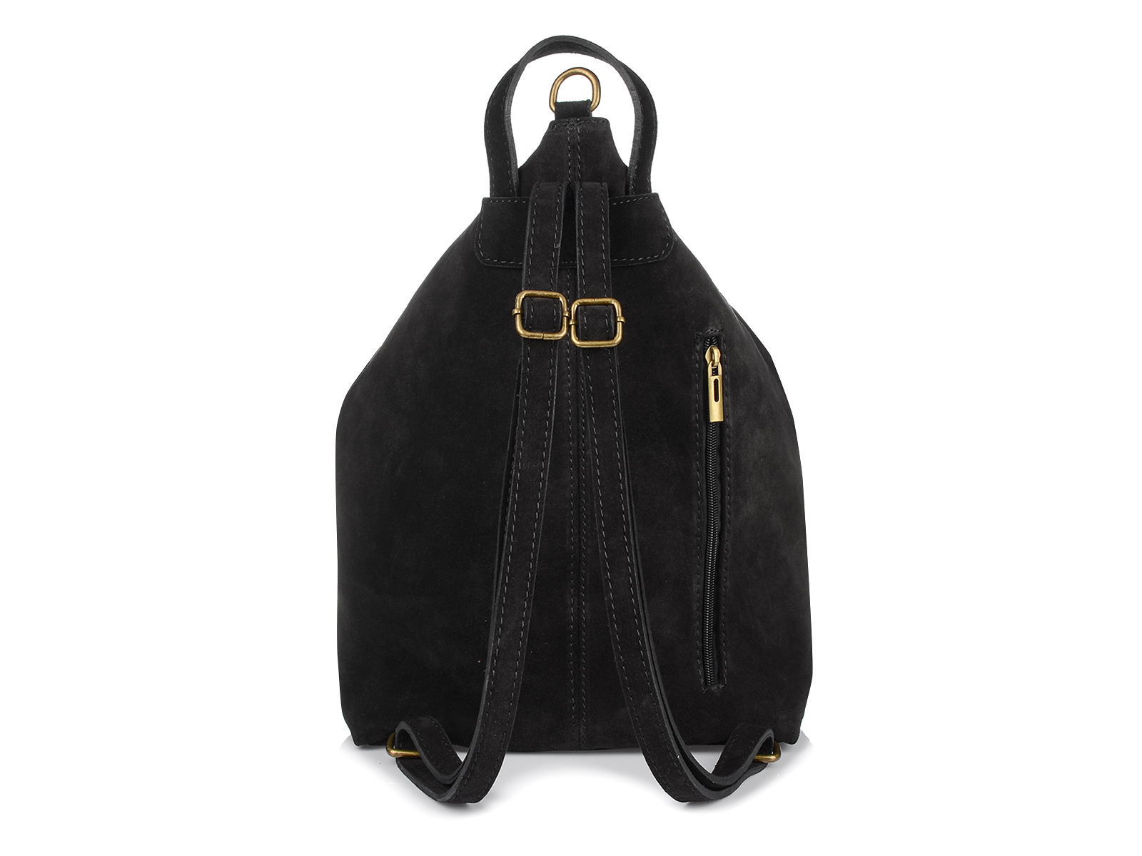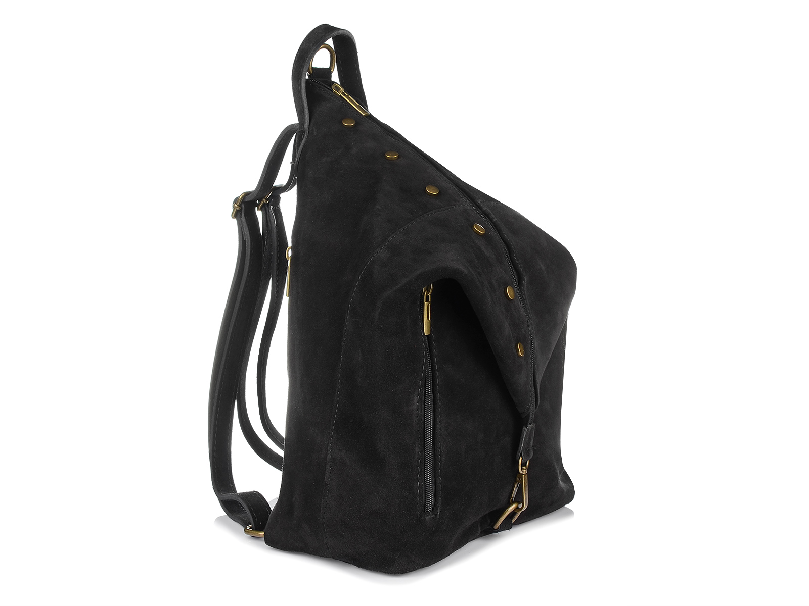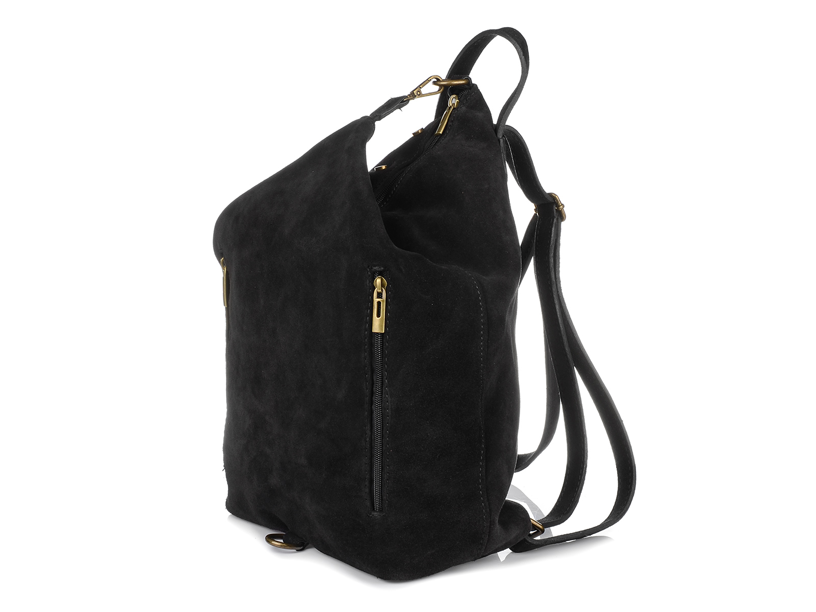 Plecak zamszowy skórzany stylowy włoski plecak skóra naturalna damski czarny W14