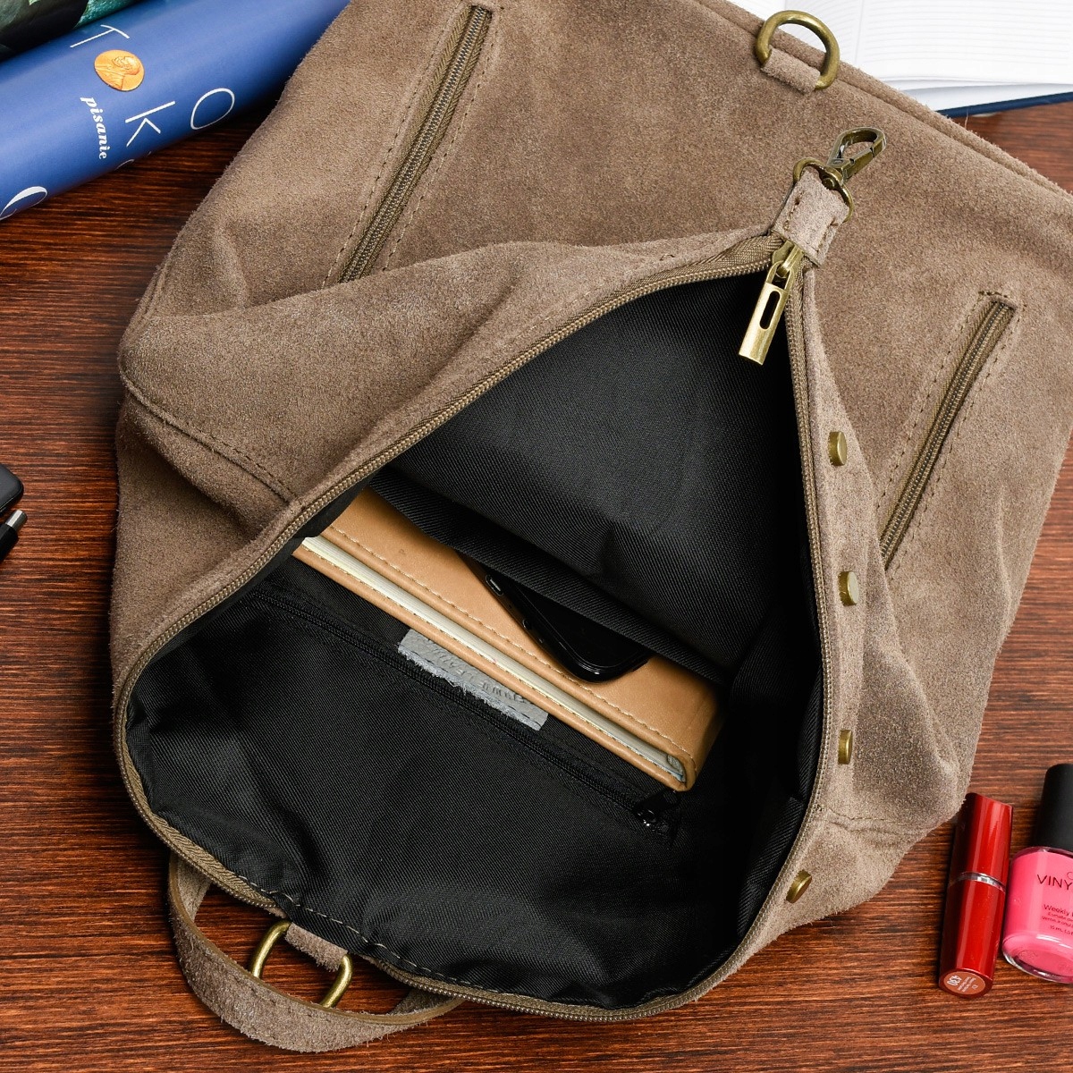 Włoski Stylowy Plecak Damski Skórzany Zamsz A4