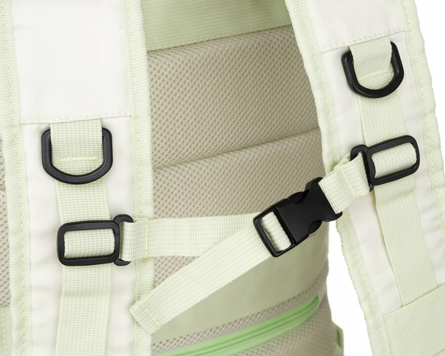 Wewnętrzna strona szelek oraz tylna ściana plecaka wyściełane są siatkowaną tkaniną zapewniającą odpowiednią wentylację – dostateczna cyrkulacja powietrza chłodzi i odprowadza pot z pleców.