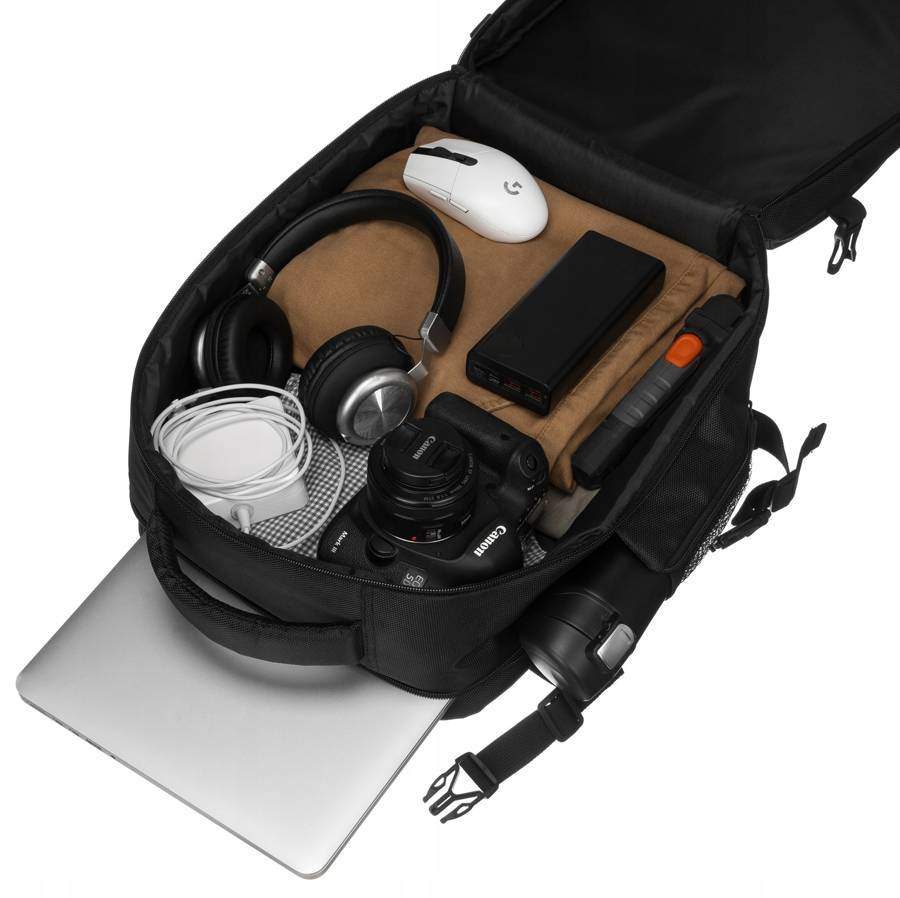 Duży i funkcjonalny plecak sportowy. Wykonany z niezwykłą precyzją z materiałów wysokiej jakości. Idealny na co dzień, do pracy jak i w podróż. Zaprojektowany z myślą o przenoszeniu dużej ilości rzeczy, od sprzętu fotograficznego, po laptopa, oraz ubrania na zmianę i prowiant.