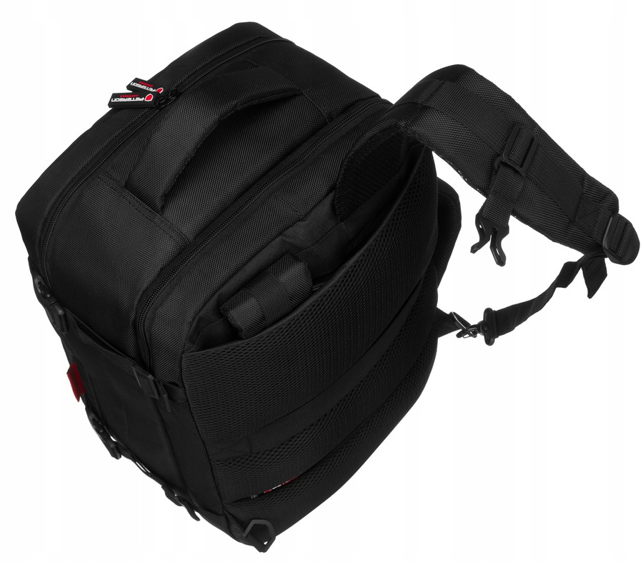 Plecak posiada aż 3 komory. Komora główna posiada możliwość szerokiego otwierania za sprawą dwukierunkowego zamka błyskawicznego.