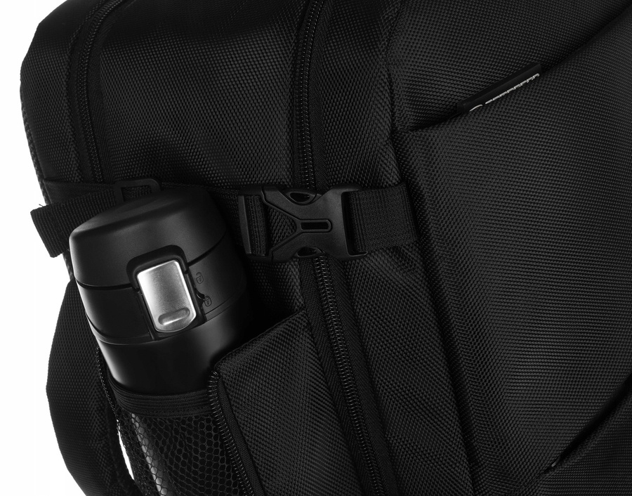 Plecak posiada dodatkowe pasy boczne z zapięciem typu FASTEX wykonane z mocnego tworzywa ABS.