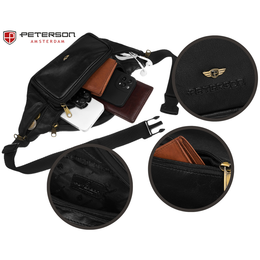 Pojemna saszetka męska w czarnym kolorze wykonana ze skóry naturalnej – Peterson