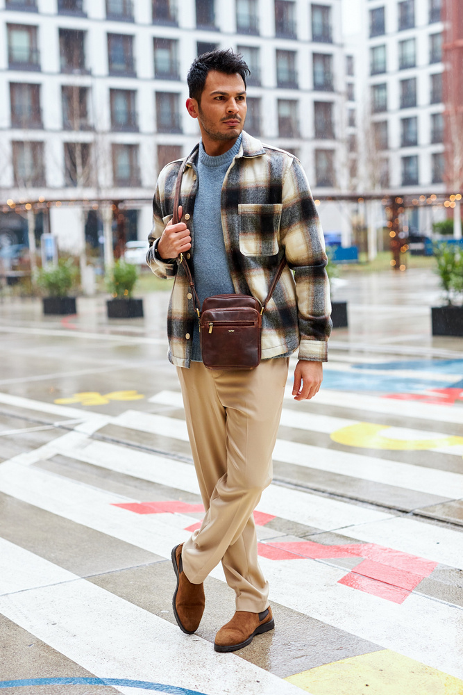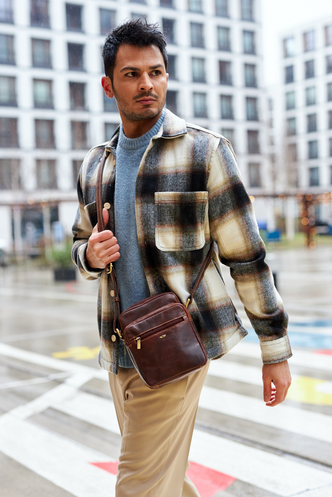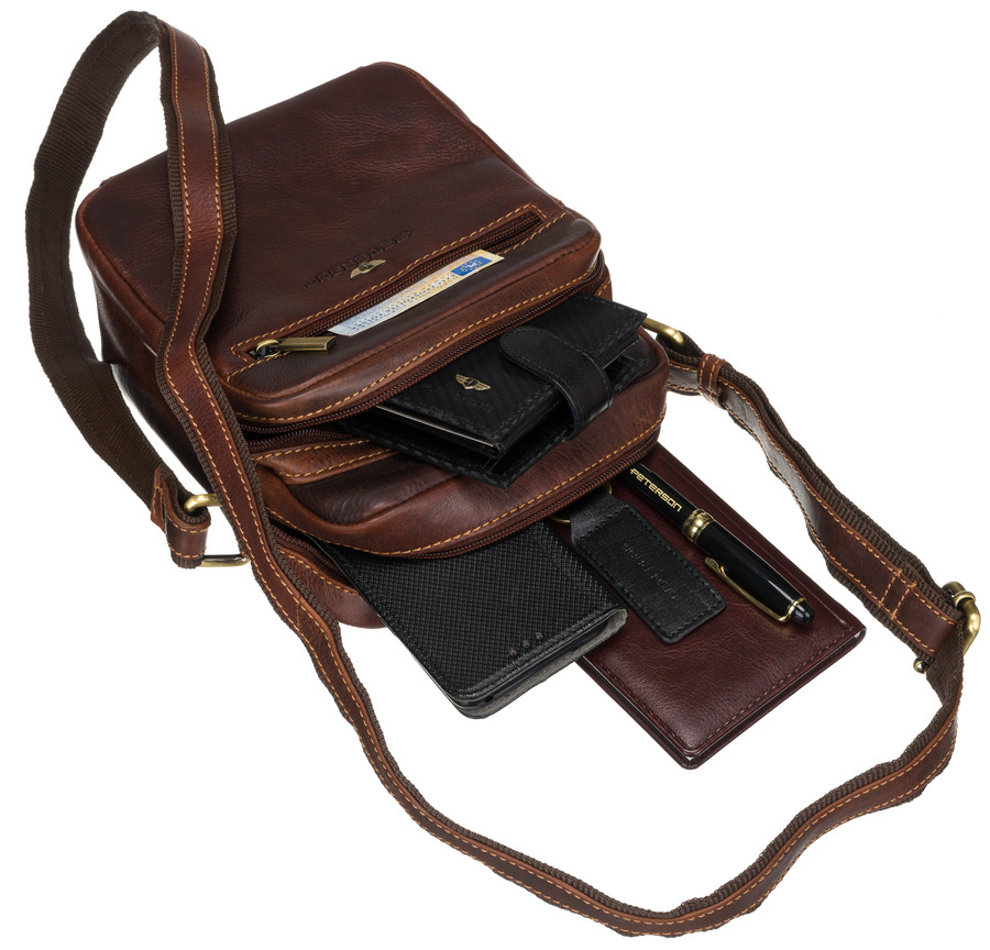 Pojemna, skórzana torba męska z kieszeniami — Peterson
