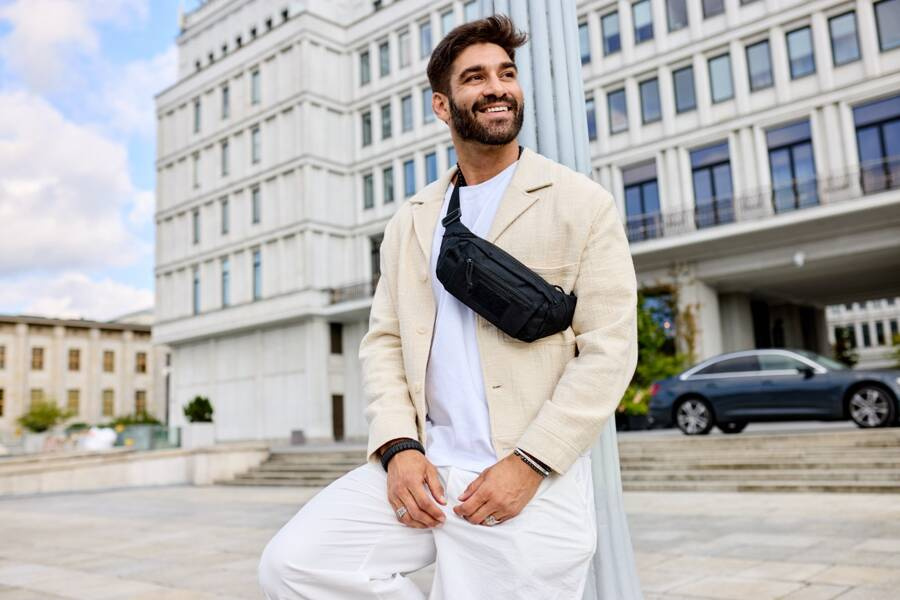 Saszetka z wygodnym paskiem, którego długość możesz w prosty sposób regulować. Takie rozwiązanie pozwala na noszenie nerki nie tylko na biodrach, ale także na ramieniu oraz przez ciało.