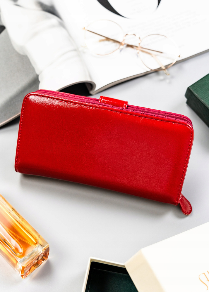 - Praktyczne zapięcia | Portfel został wyposażony w dwa praktyczne zapięcia typu zatrzask i suwak.
