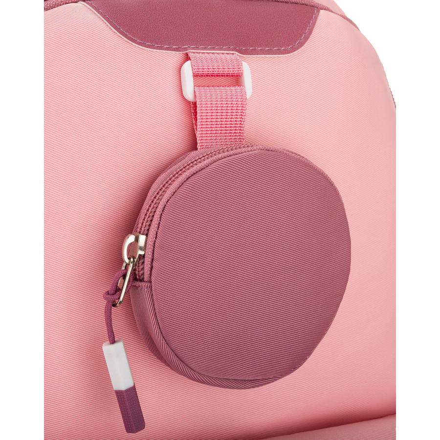 - Do przodu plecaka przymocowano okrągłą saszetkę o średnicy 9 cm, zapinaną na zamek.