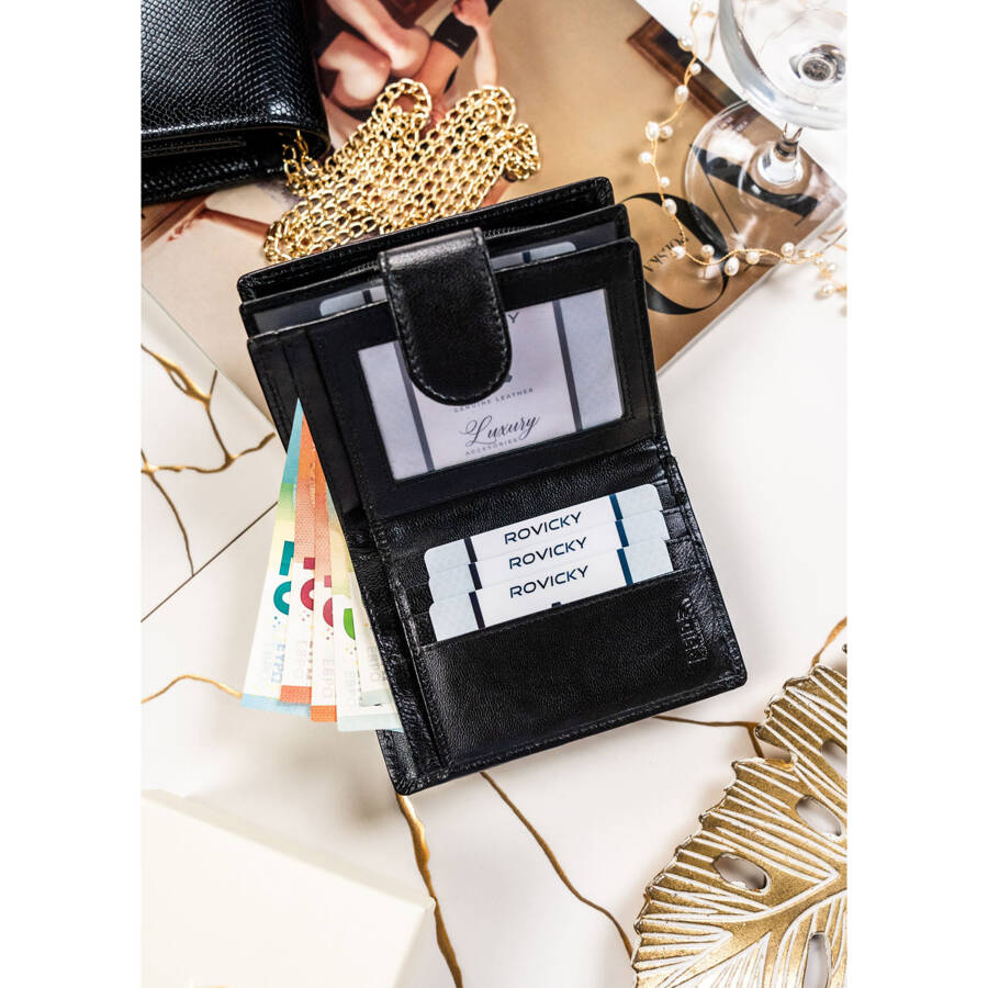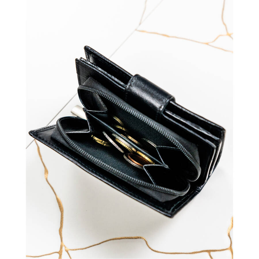 Portfel jest bardzo pojemny, mimo nie tak dużych rozmiarów. W kieszeniach na banknoty i monety zmieścisz satysfakcjonującą ilość gotówki. Kieszenie te, wyściełane są odporną na otarcia podszewką.