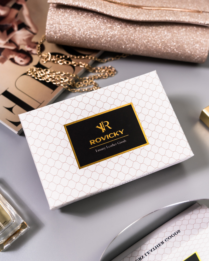 - Pudełko prezentowe | Portfel zapakowany jest w firmowe pudełeczko z twardej tektury.
