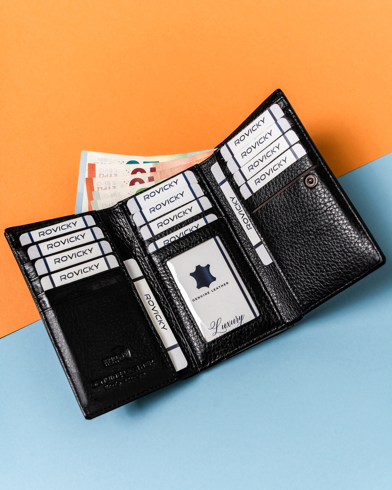 Pojemny, poziomy portfel damski ze skóry naturalnej – Lorenti