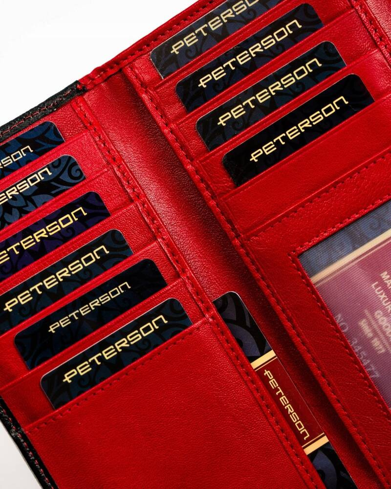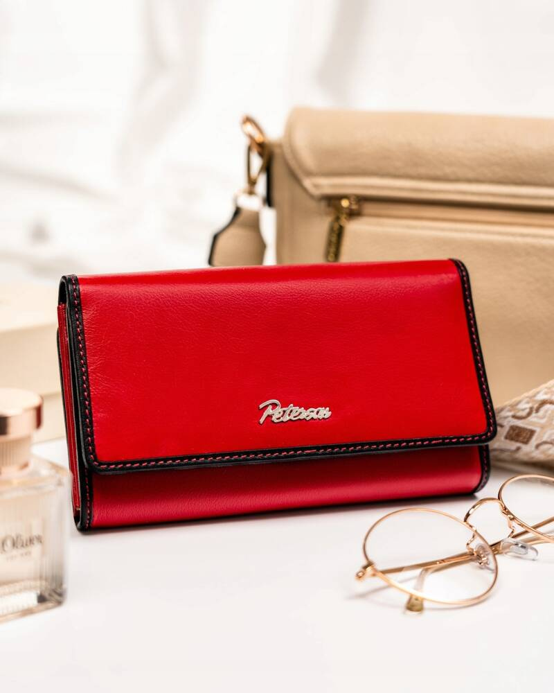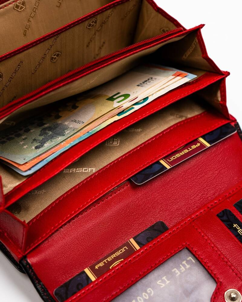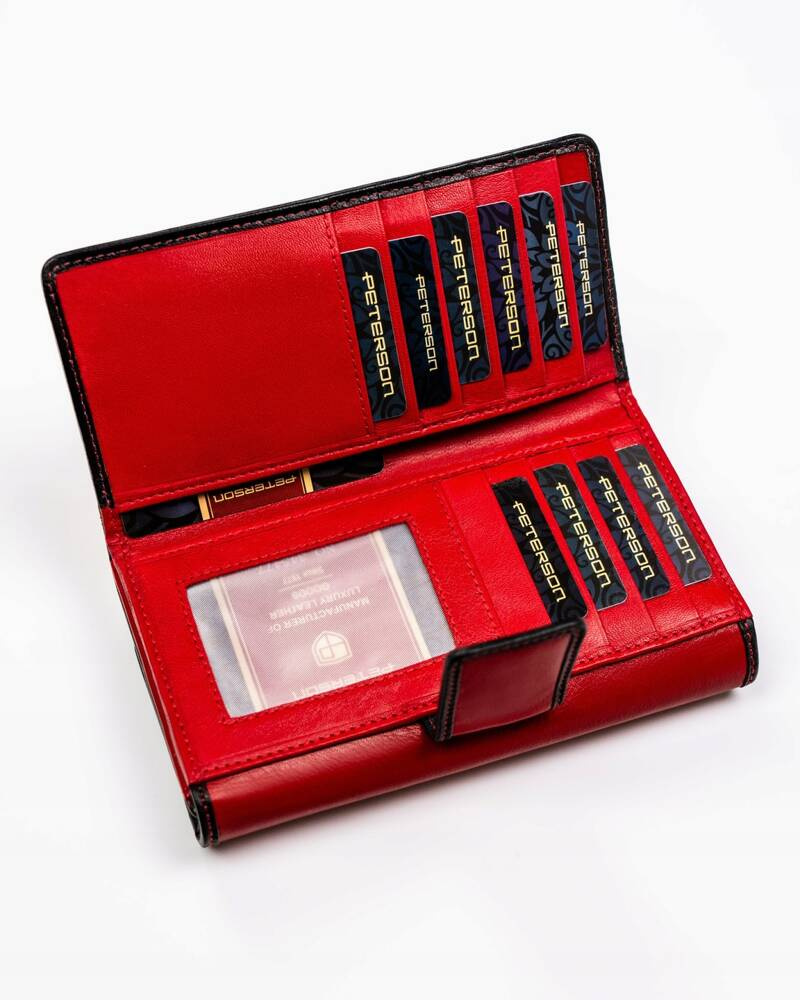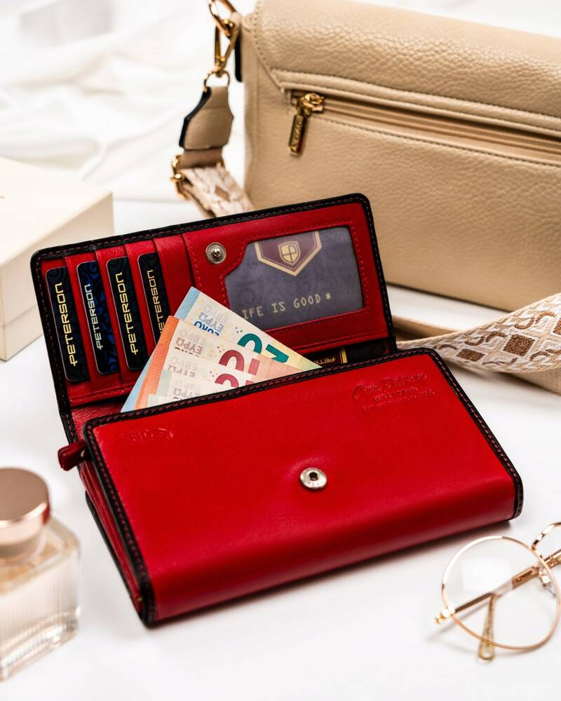 Pojemny, skórzany portfel damski na zatrzask i suwak – Peterson