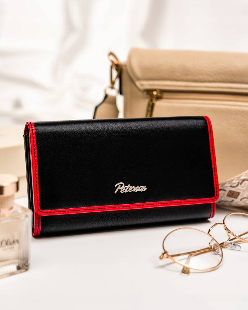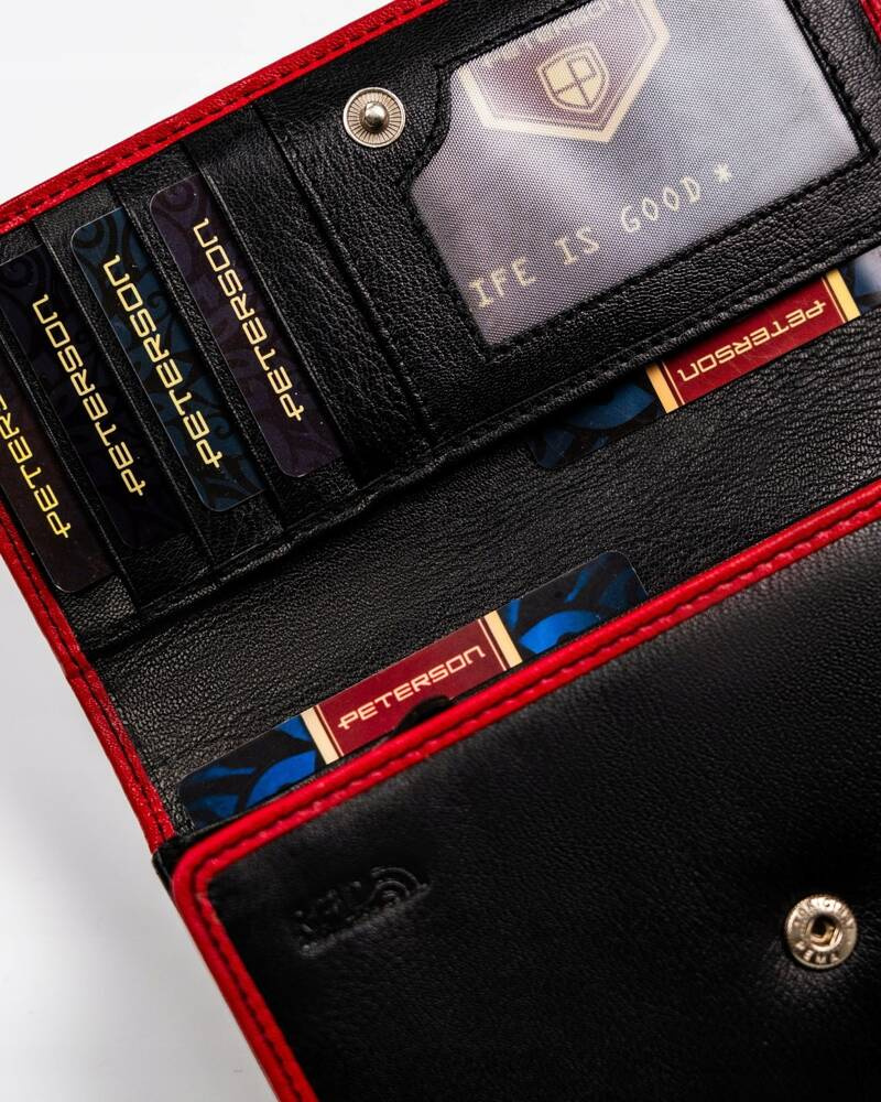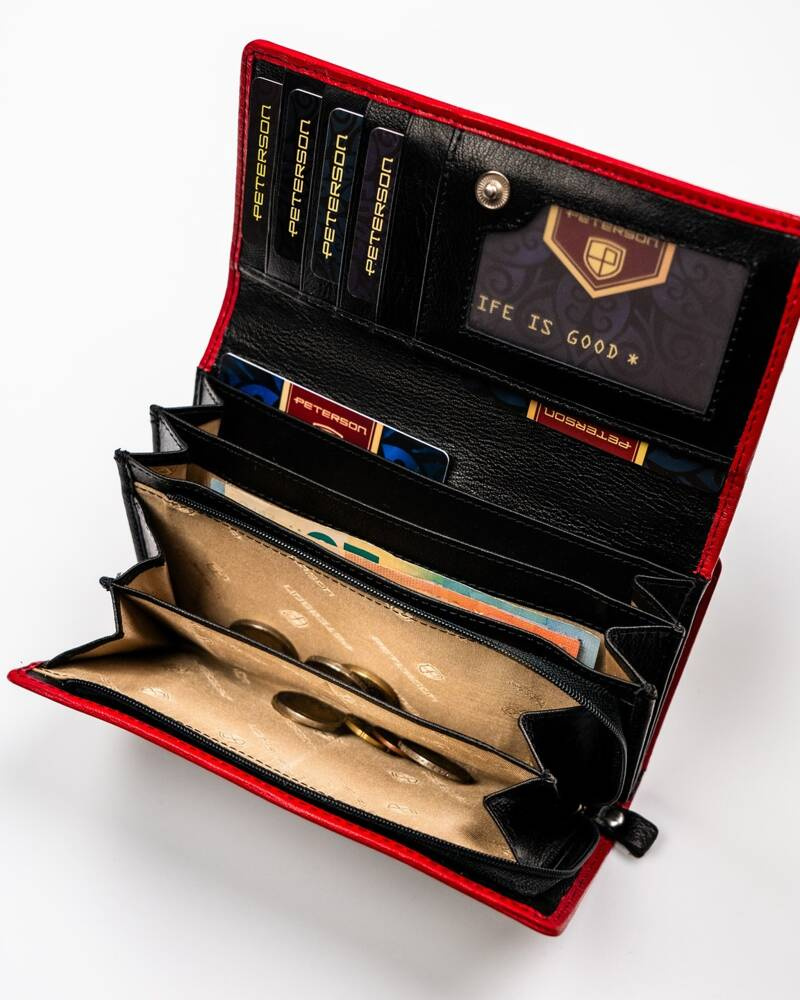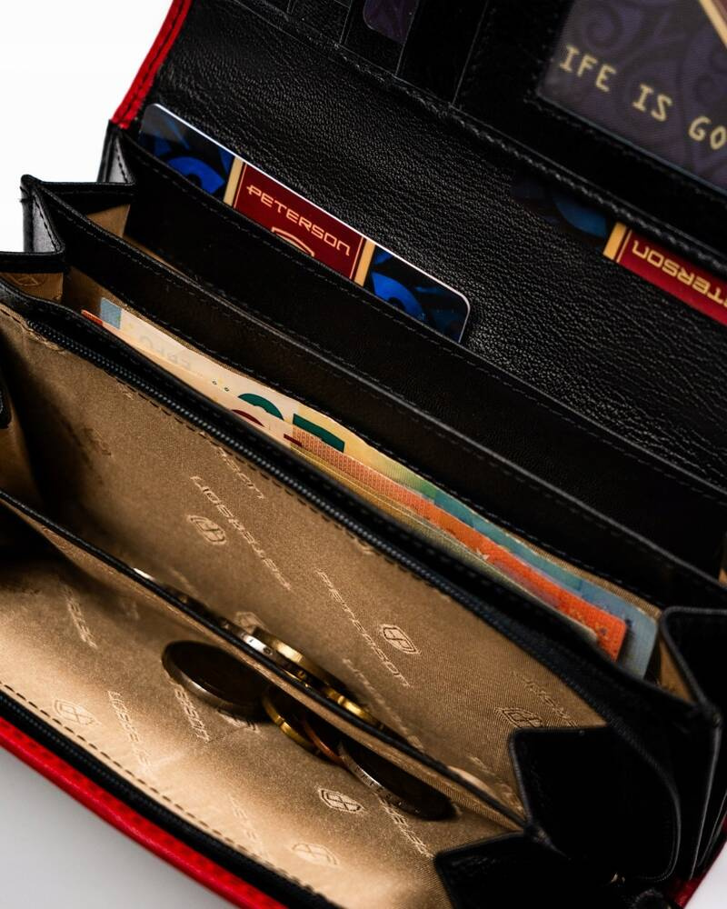 Pojemny, skórzany portfel damski na zatrzask i suwak – Peterson