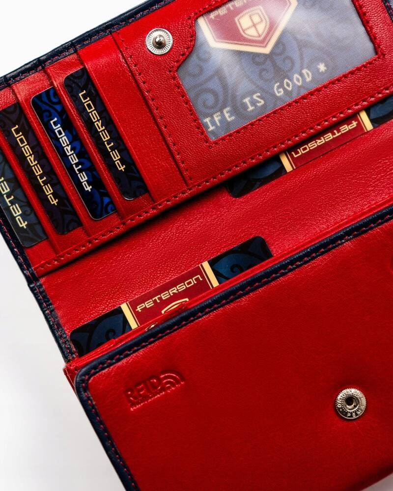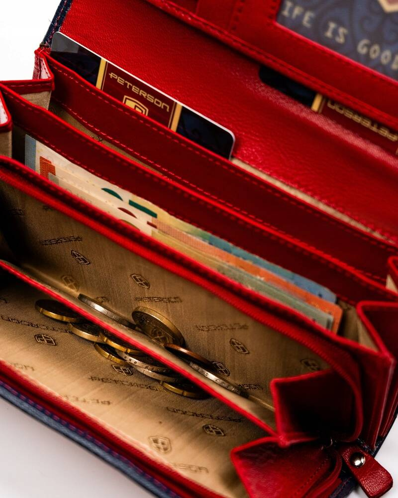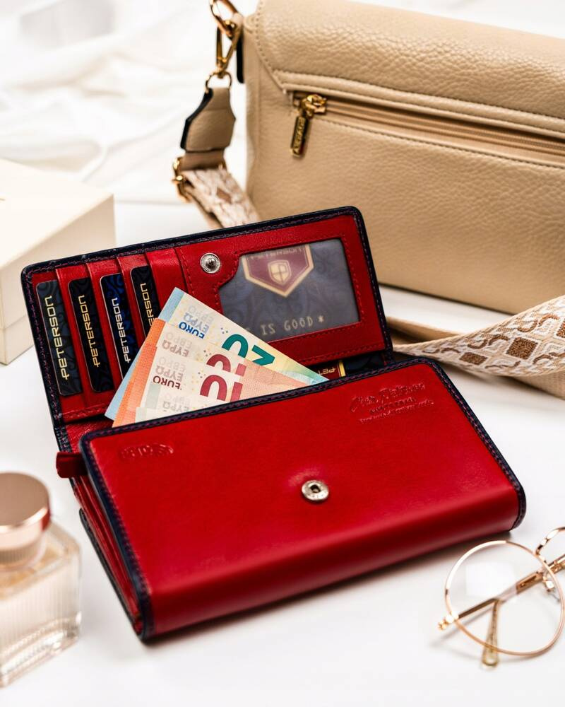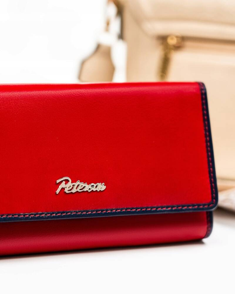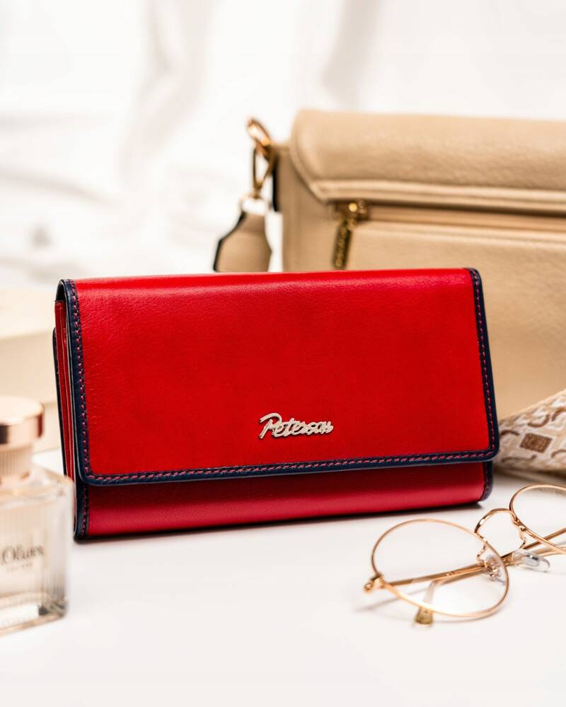 Pojemny, skórzany portfel damski na zatrzask i suwak – Peterson